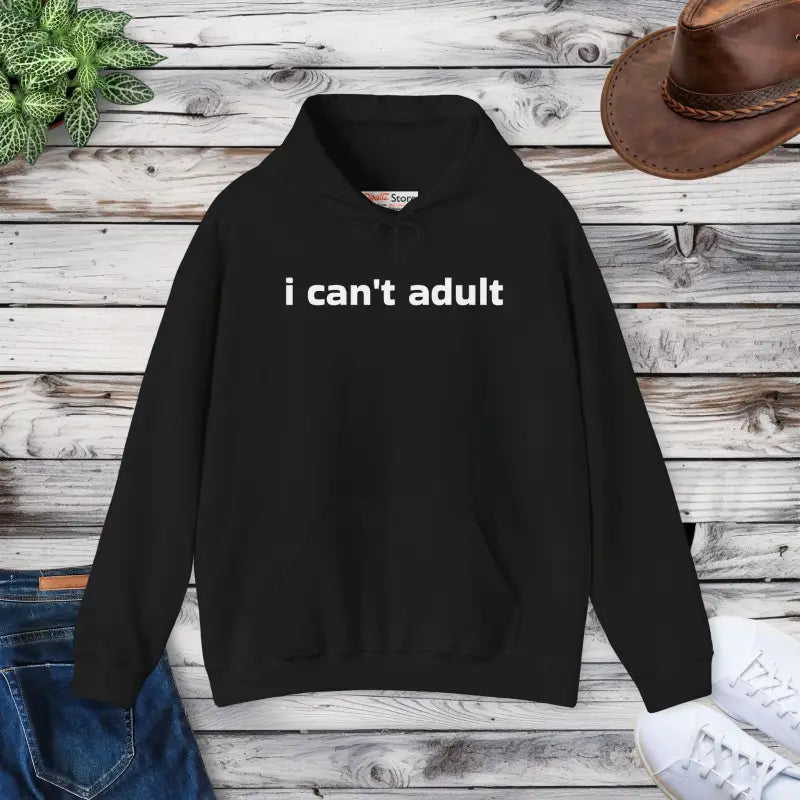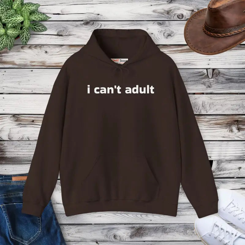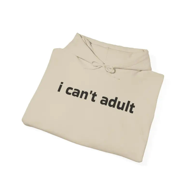 Available in heather grey, deep charcoal, and dusty rose, this unisex pullover features a relaxed silhouette, roomy hood, and sleek stitching that flatters any style. The playful “I can’t adult” motif pops against the fabric for a lighthearted twist.