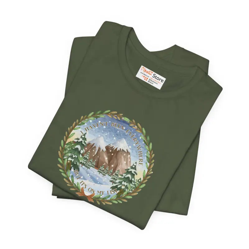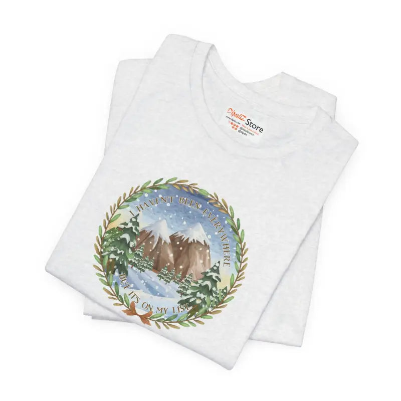 I haven't been everywhere, but it's on my list, Adventure Unisex Jersey Short Sleeve Tee. This classic unisex jersey short sleeve tee fits like a well-loved favorite. Soft cotton and quality print make users fall in love with it over and over again. These t-shirts have-ribbed knit collars to bolster shaping. The shoulders are tapered for a better fit over time. Dual side seams hold the garment's shape for longer.