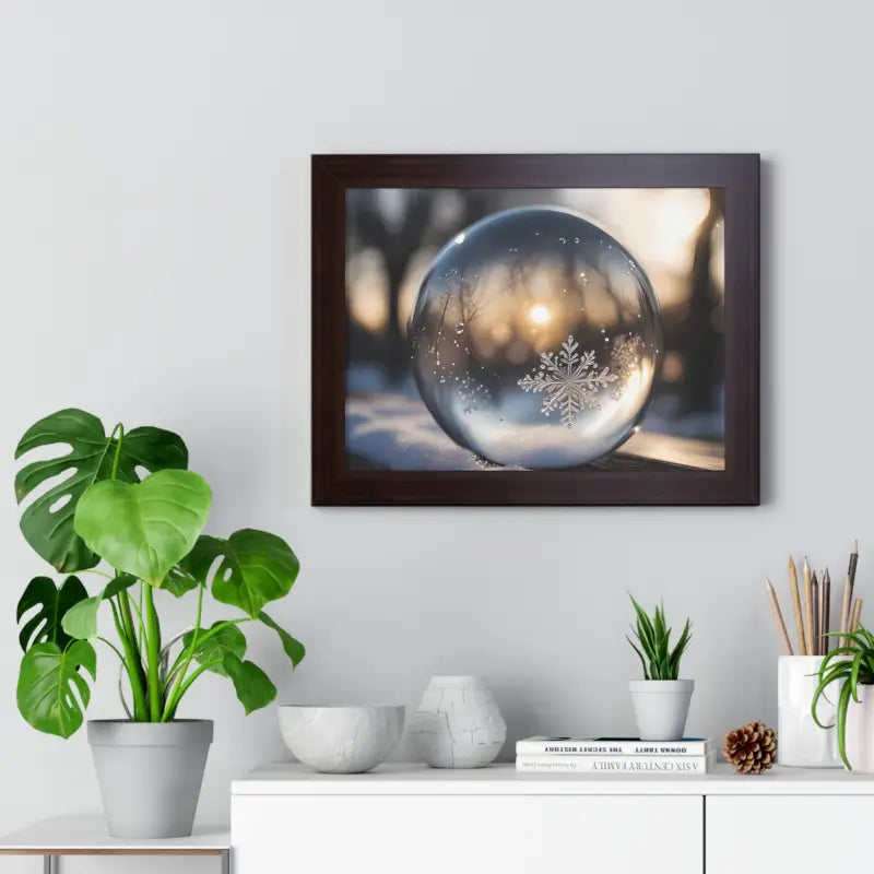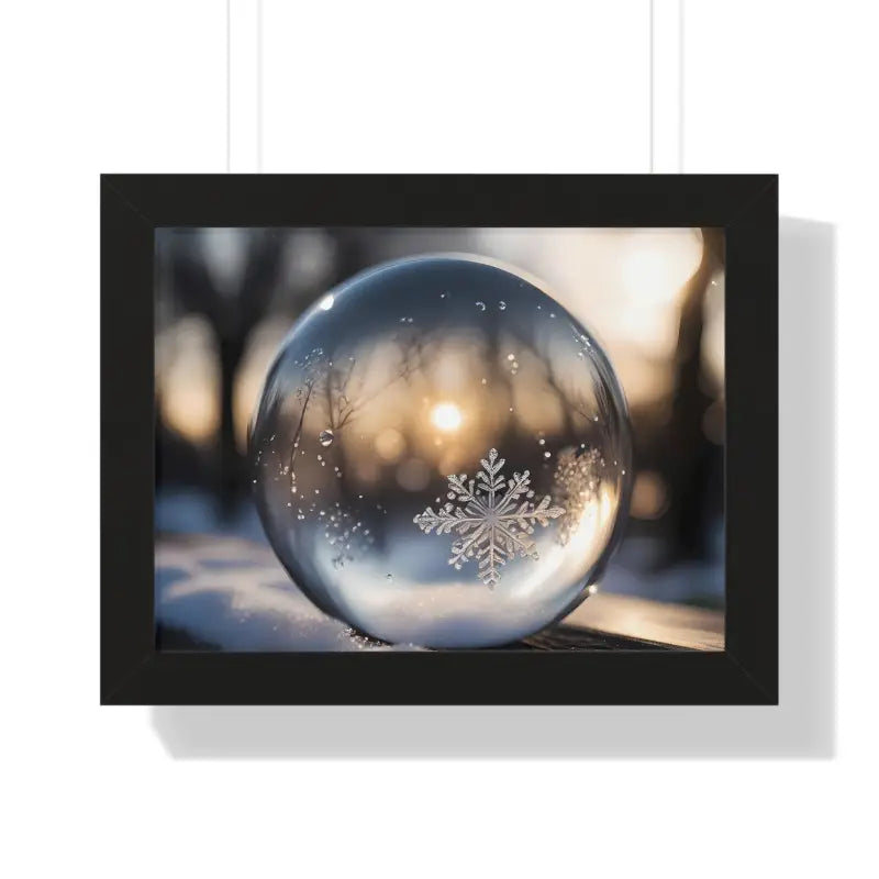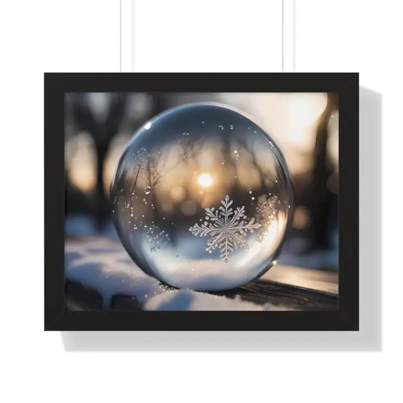 Ice Crystal in a bubble, Framed Horizontal Poster. Elevate your space with this stunning framed horizontal poster, perfect for high quality decor or a laid-back lifestyle. Ideal for birthdays, housewarmings, or as a special Mother's Day gift. Relevant for home decor enthusiasts and ocean lovers. Perfect for creating a serene and relaxing atmosphere in any room.