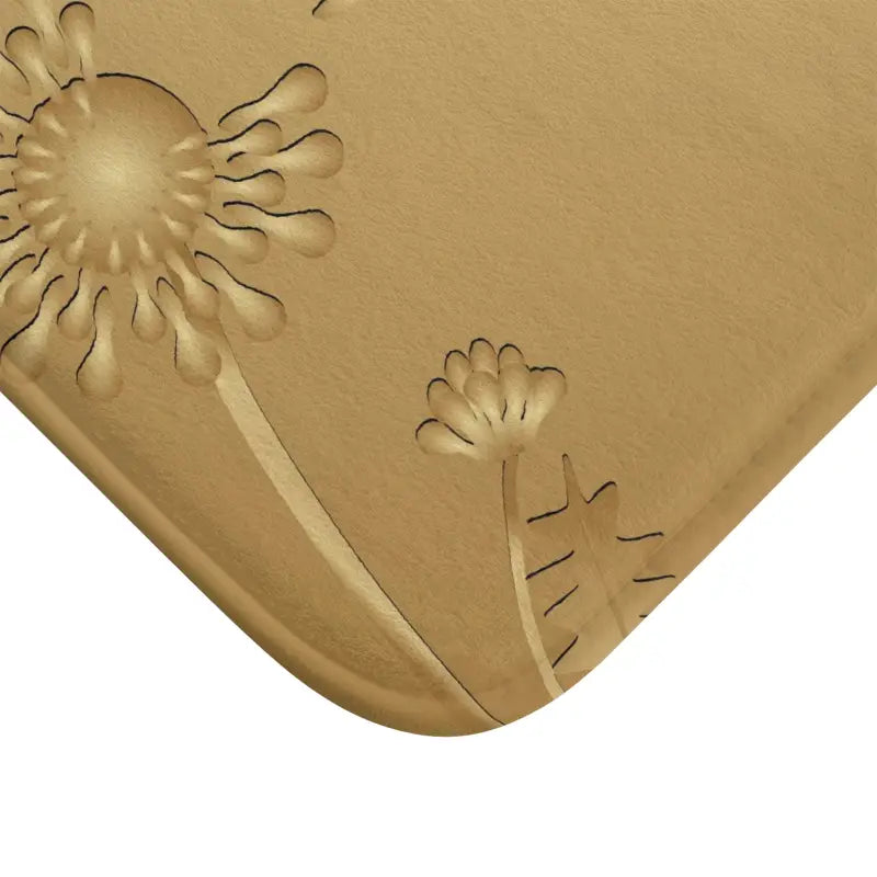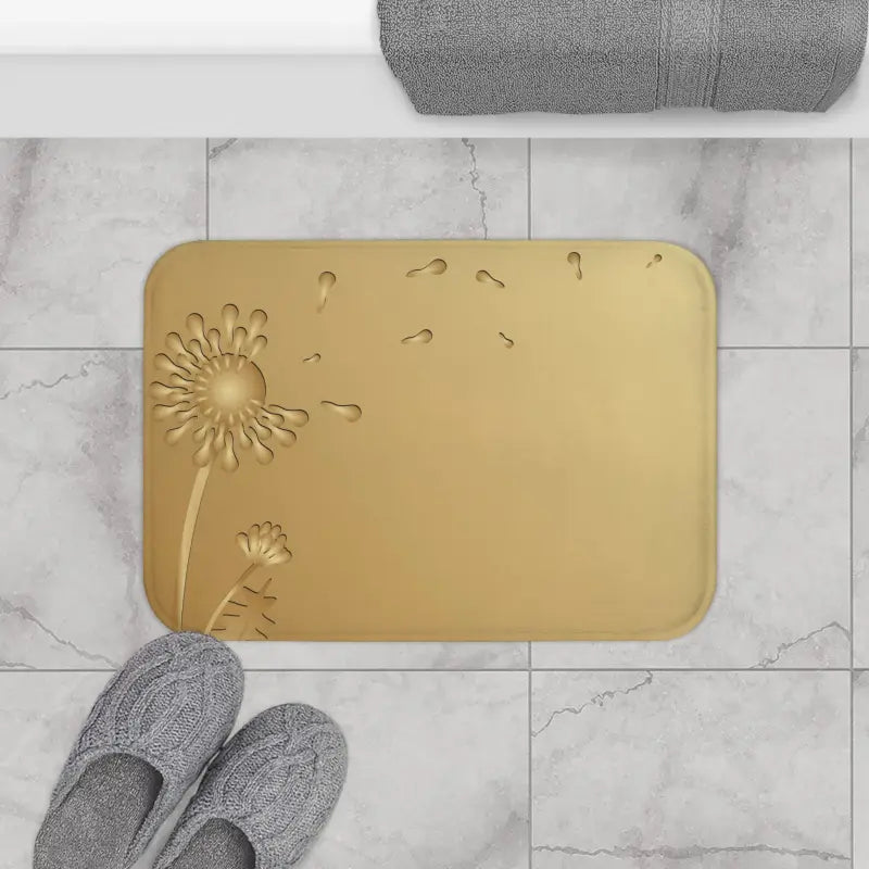 Golden Dandelions, Bath Mat. Beautiful mat for the most private room in one's house. This bath mat is as practical as it is stylish - the anti-slip backing keeps the bath mat firmly in place and reduces the risk of slipping.