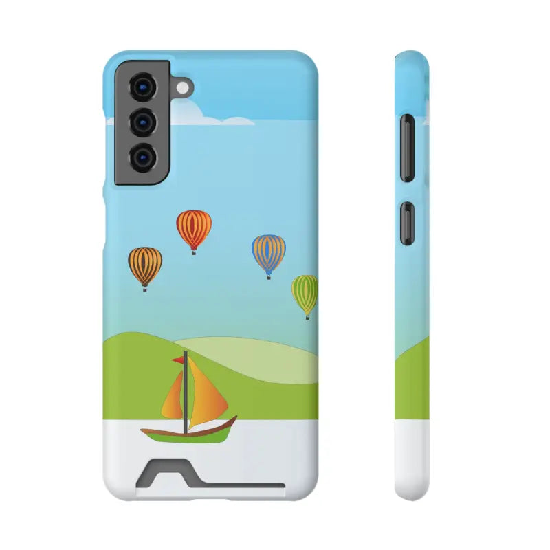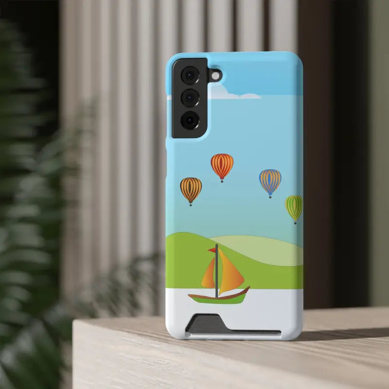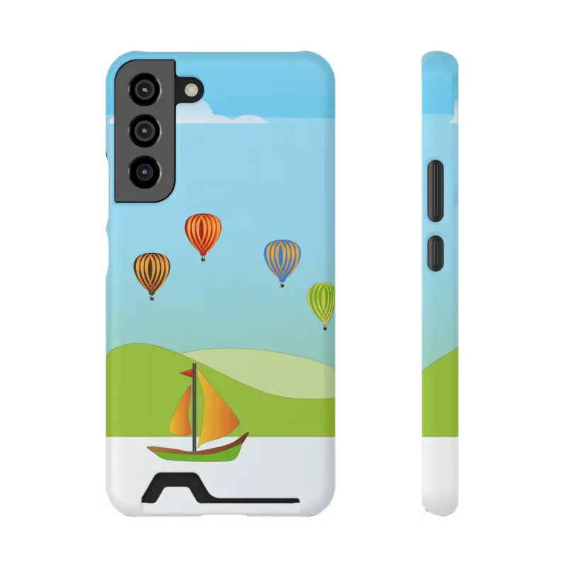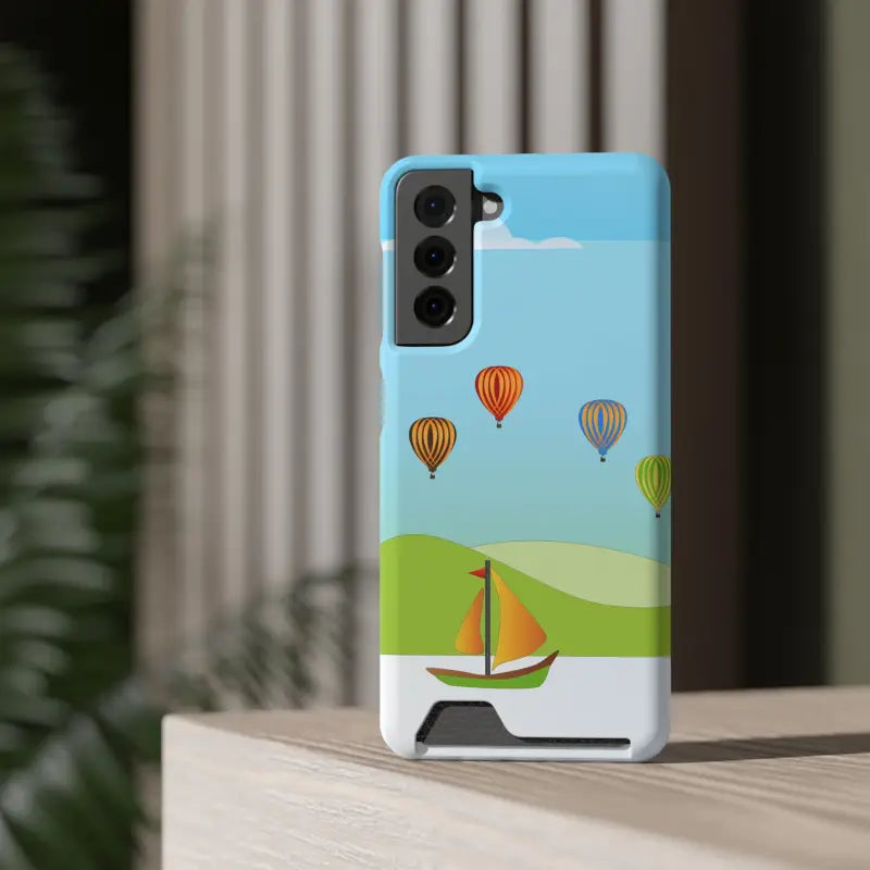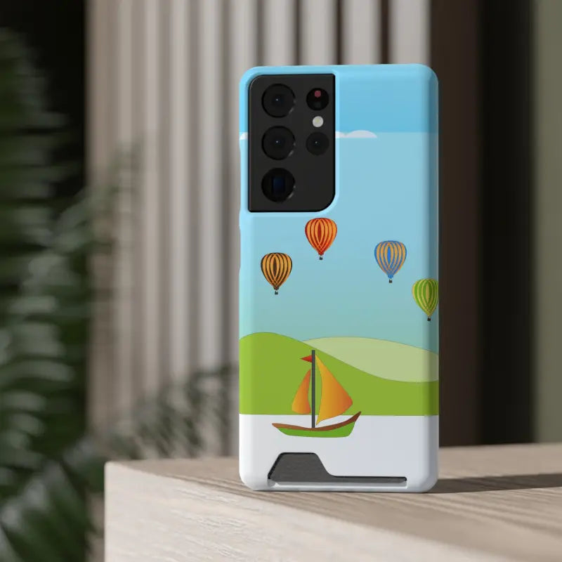 Bring home the ultimate in safety, convenience, and adventurous energy. With an impact-resistant design, this phone case with card holder ensures your phone and cards stay protected wherever your next big escape takes you. The unique ship with air balloon theme inspires imagination, perfect whether you’re braving city streets or dreaming about oceans and skies.