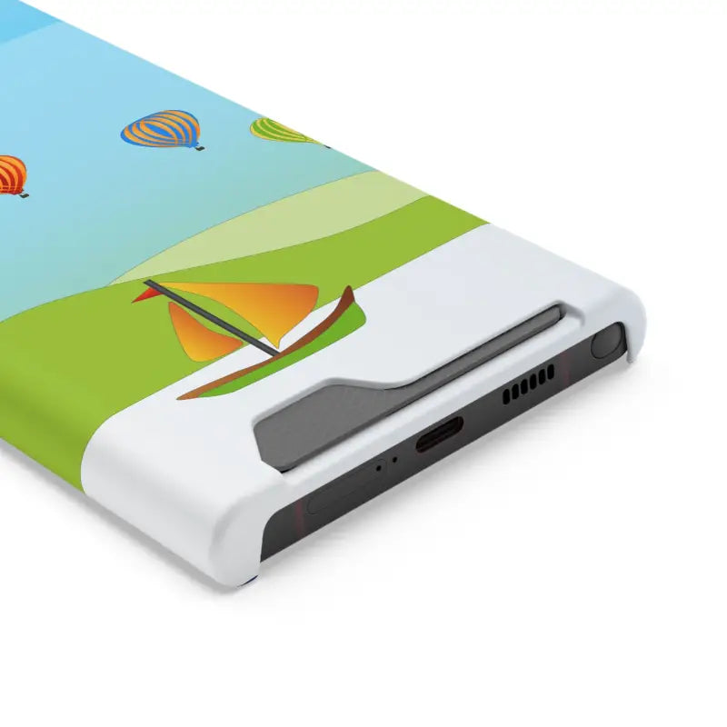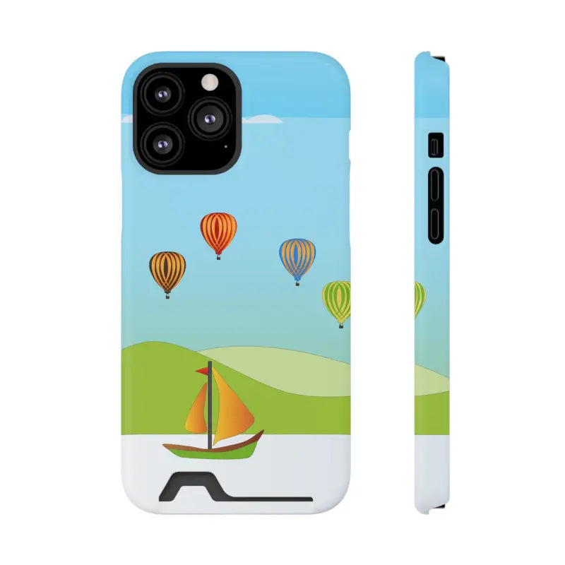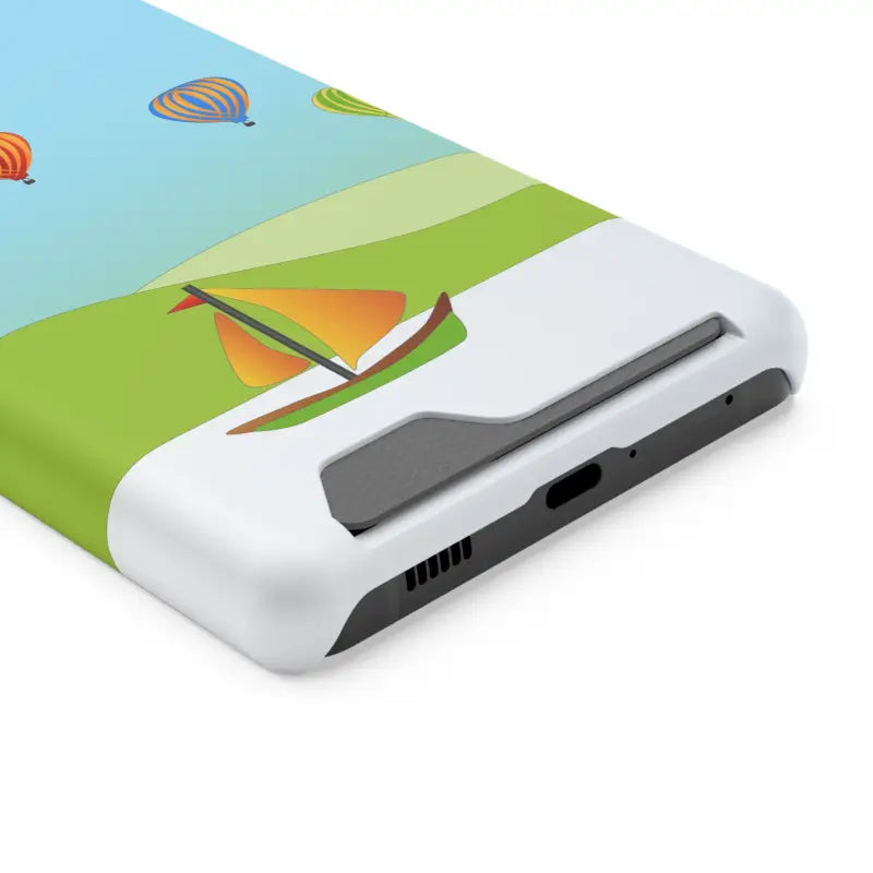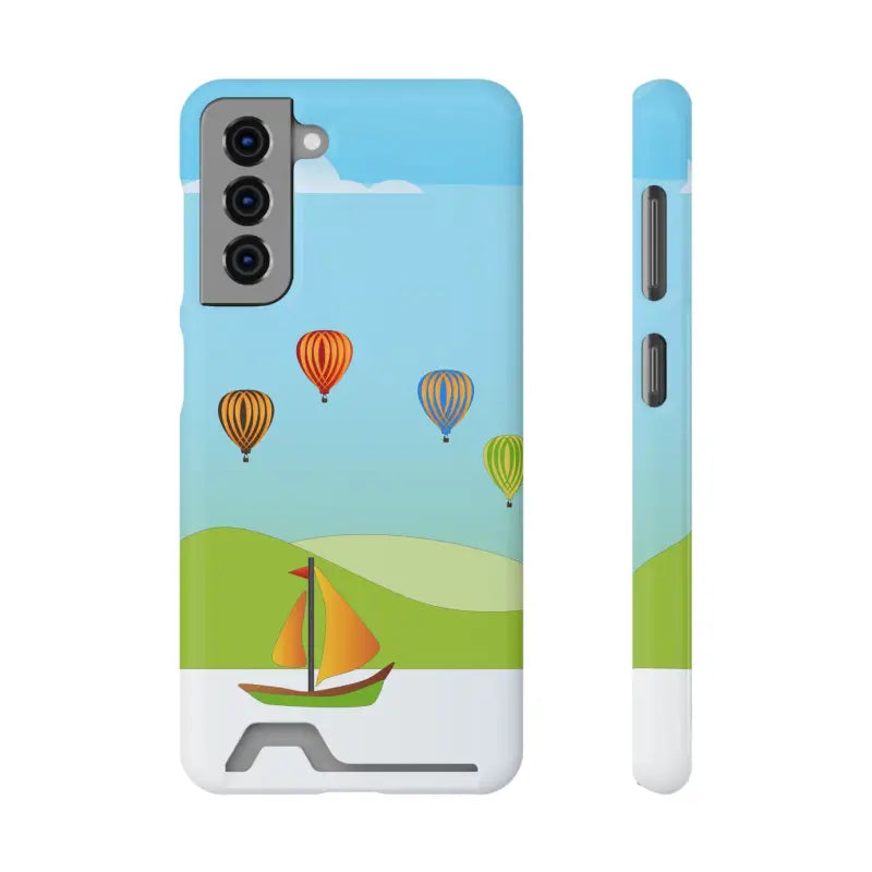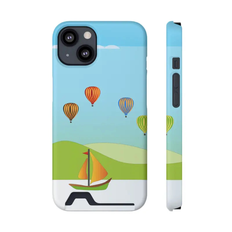 Bring home the ultimate in safety, convenience, and adventurous energy. With an impact-resistant design, this phone case with card holder ensures your phone and cards stay protected wherever your next big escape takes you. The unique ship with air balloon theme inspires imagination, perfect whether you’re braving city streets or dreaming about oceans and skies.
