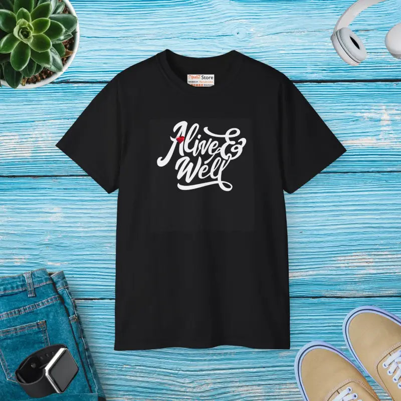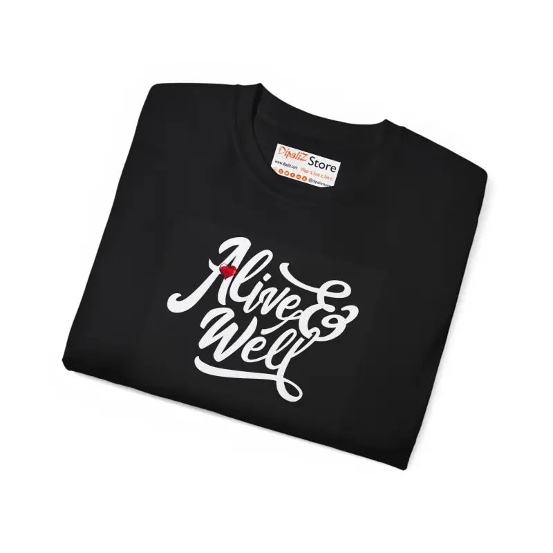 Upgrade your wardrobe, embrace comfort, and make a real fashion statement with this Alive and Well womenās t-shirt. Donāt just blend inābe bold, be eco-chic, and let your personality shine. Click add to cart now and take your womenās fashion to the next level with the most comfortable, trendy t-shirt around!