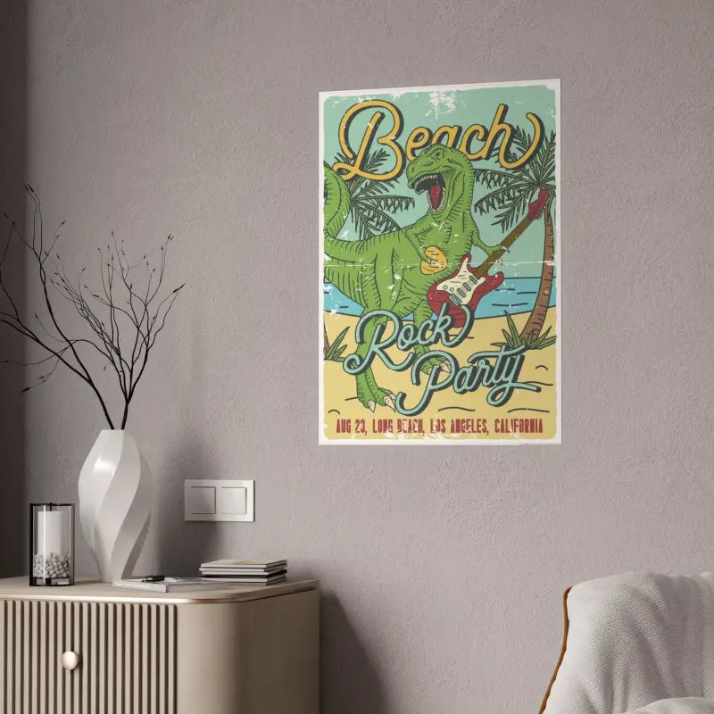 Turn boring walls into a celebration—get your beach rock party on with this electrifying T-Rex poster and add instant energy and bold style to your personal space. Bring the fun of the beach and the thrill of a rock party home today—let the T-Rex be the life of your room!