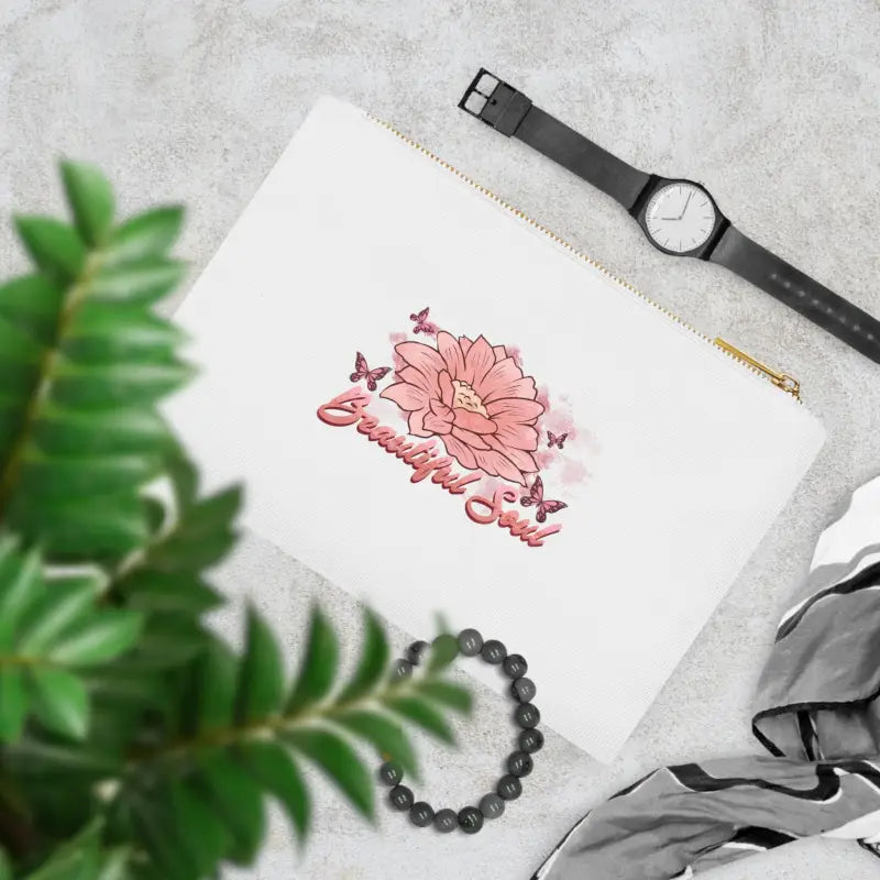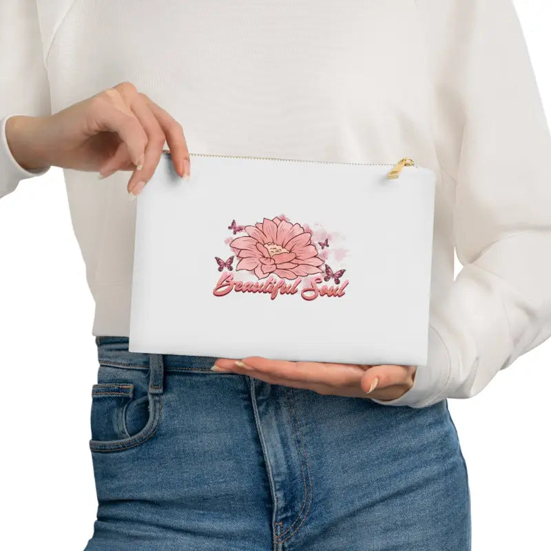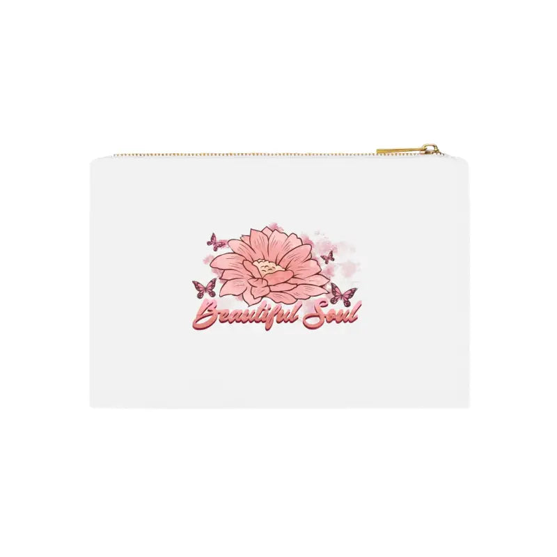 Beautiful soul floral Cosmetic Bag. Made with 100% cotton canvas, this cosmetic bag brings out the chic in your style. Coming in at 9.5” by 7” size, it features a gold color zipper along with a lined interior for both added fashion points as well as durability. Add your own design and travel with all your supplies or valuables stylishly organized.