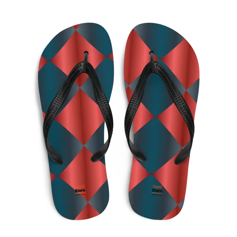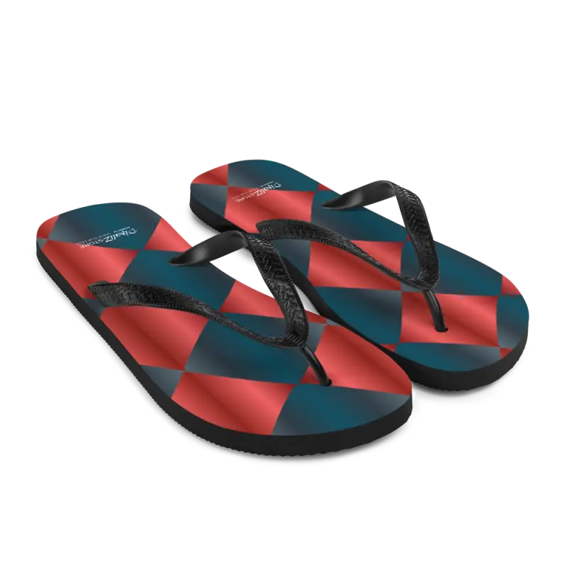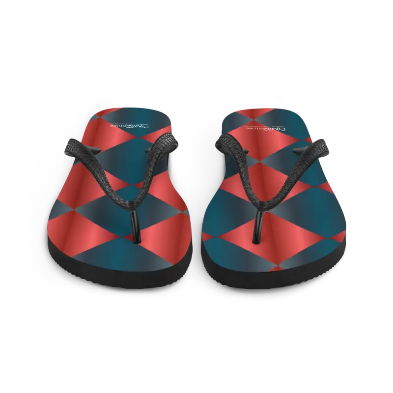 Ready to upgrade your summer adventures with flip flops that turn every stroll into a style statement. Experience comfort, durability, and an energy boost every time you step out in these blue and red flip flops featuring a striking geometrical triangles pattern.