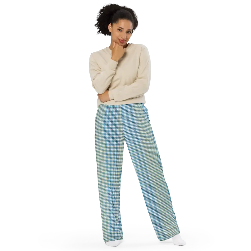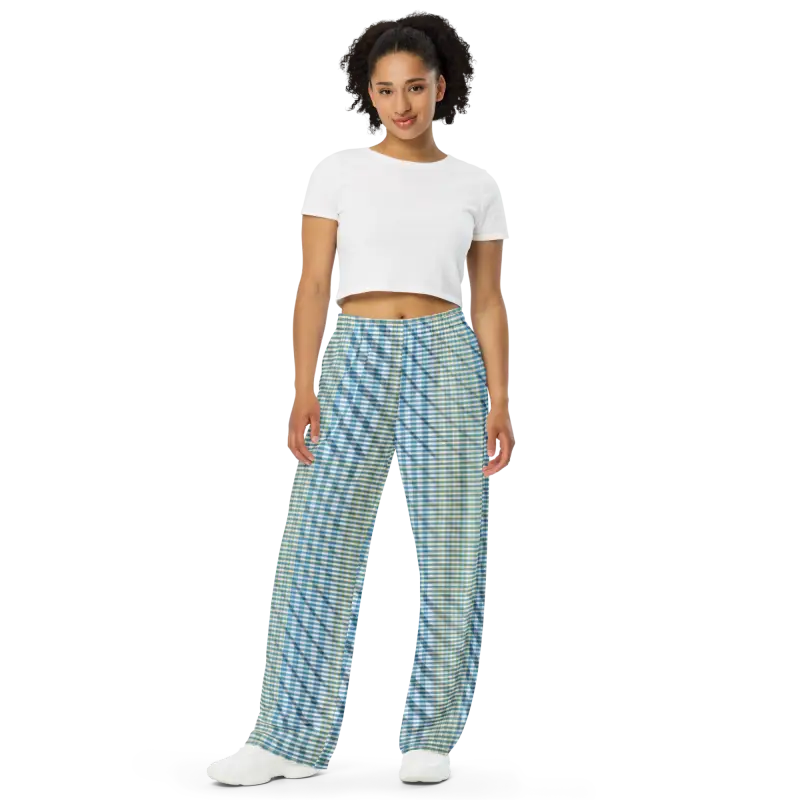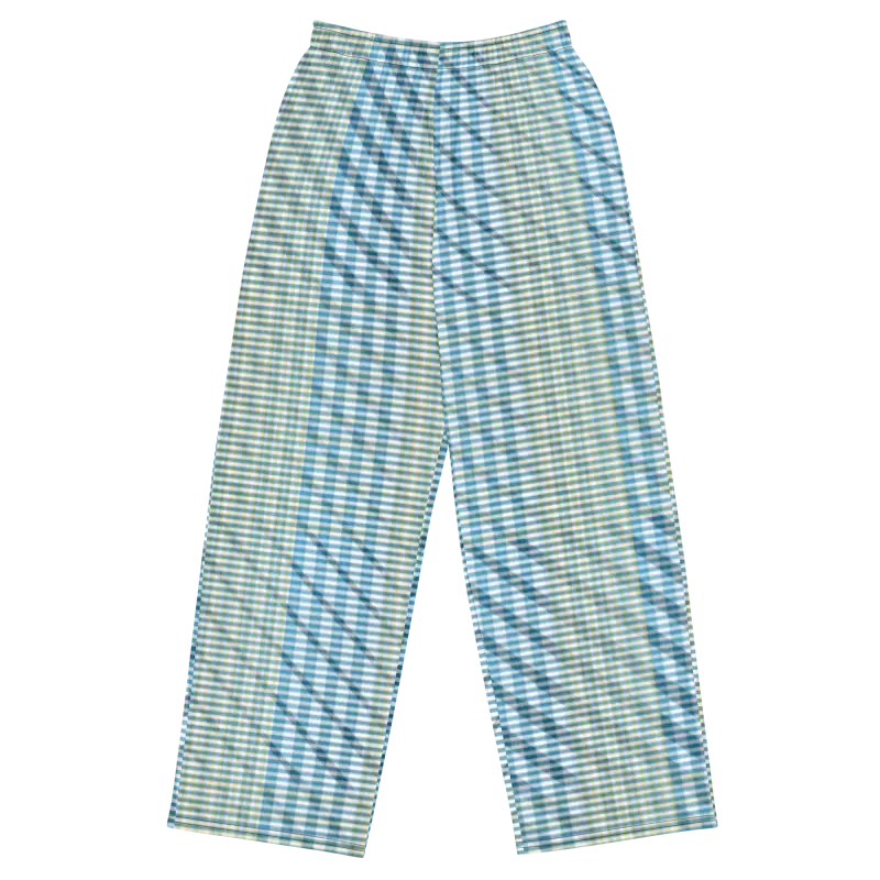 Wide Leg Pants - Blue Yellow Check Print Unisex - DipaliZ