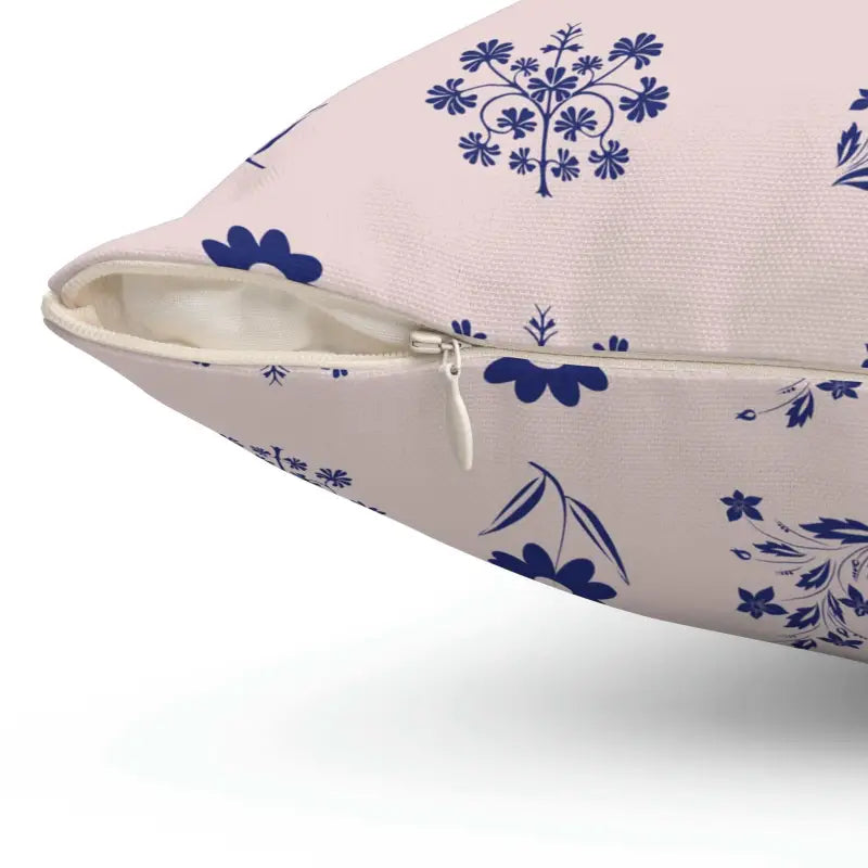 Revamp your home with this bold polyester square pillow—the quick, simple way to create a standout vibe. Add this show-stopping pillow with blue flowers to your cart and let your personality shine through every detail.