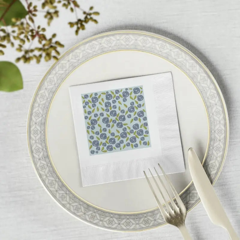 Print: Sophisticated white paper napkins with a modern, coined embossed edge detail for a crisp and elegant finish.