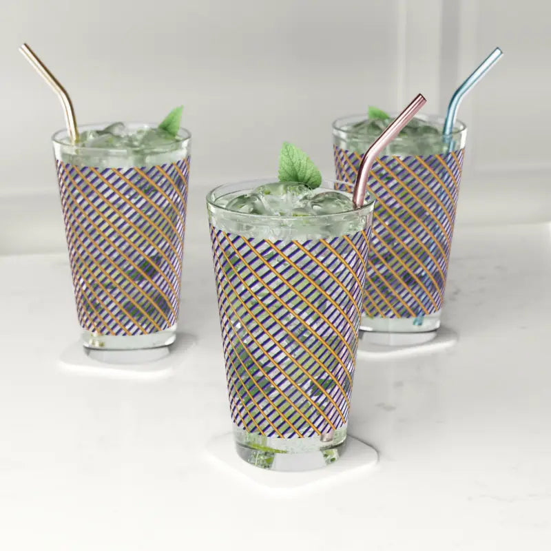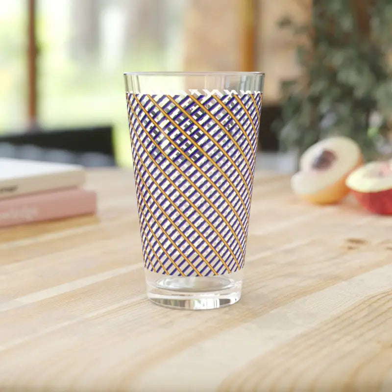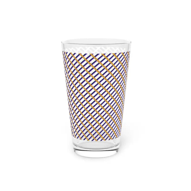 Checkered pattern, Pint Glass, 16oz. Nothing can replace a pint glass except for another pint glass. These highly popular 16oz custom printed pint glasses can now accommodate unique designs that add a special touch to every sip. These long and transparent glasses are highly versatile, can make for a great housewarming gift, and are bound to be used in any household.