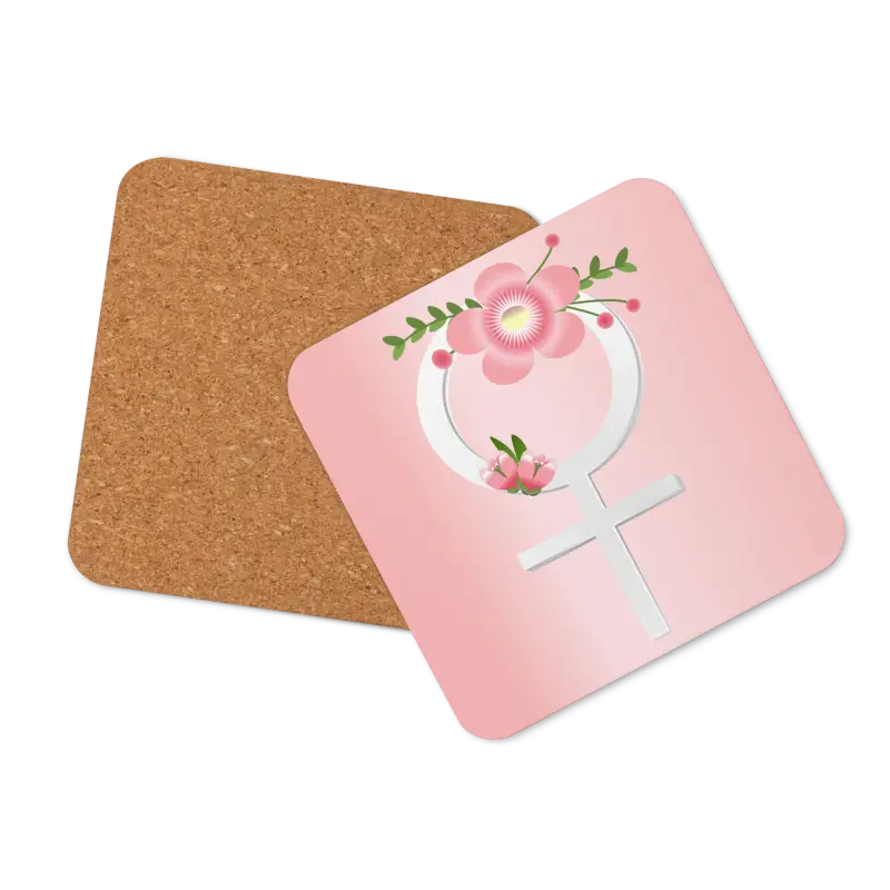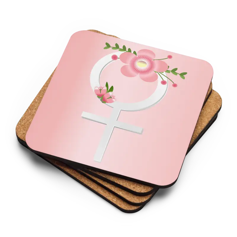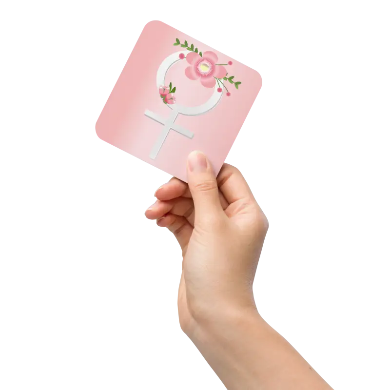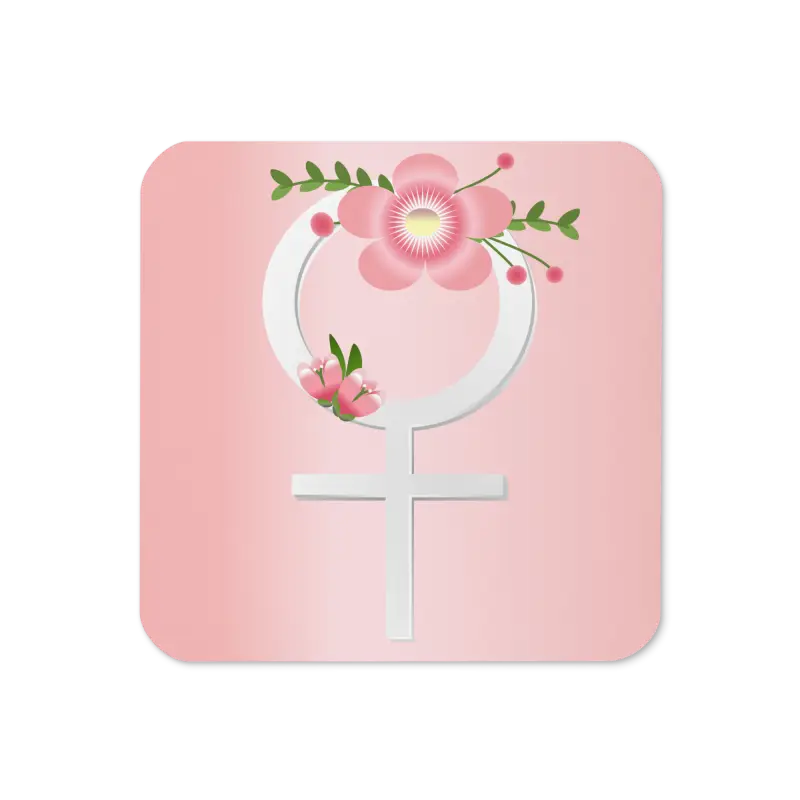 - Stylish pink flowers and bold female symbol offer a captivating, feminine touch