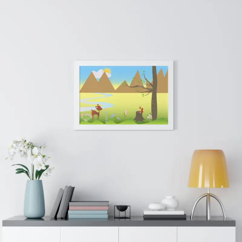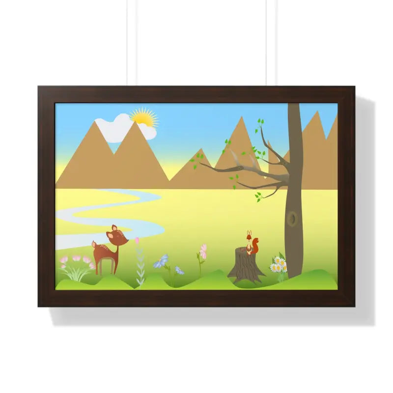 Flora and Fauna, Framed Horizontal Poster. Available in seven sizes and three framing colors, these archive-worthy ink and photo paper enrich any applied design. A premium hardware inclusion on the backside guarantees clean hanging; making sure that the premium horizontal poster’s design comes across as it should. The framing is made of MDF - a move pointing toward ecological friendliness.