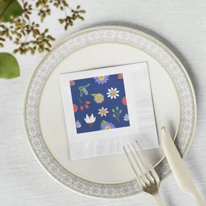 - Pairs beautifully around flowers on blue napkin trays or any color scheme