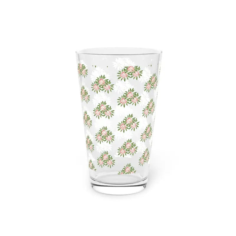 Floral, Pint Glass, 16oz. Nothing can replace a pint glass except for another pint glass. These highly popular 16oz custom printed pint glasses can now accommodate unique designs that add a special touch to every sip. These long and transparent glasses are highly versatile, can make for a great housewarming gift, and are bound to be used in any household.