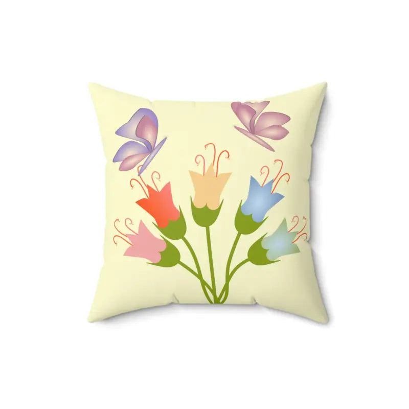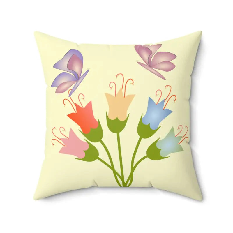 Brighten up your space instantly with this vibrant polyester square pillow, featuring a cheerful flower bunch double print to refresh any room in seconds.