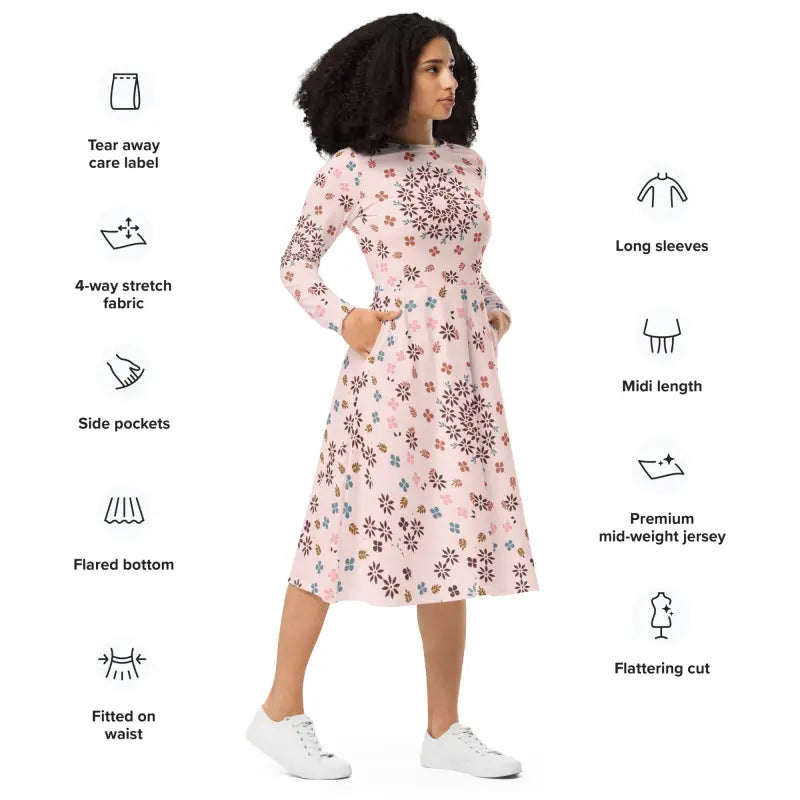 Indulge yourself in the epitome of style with this Floral Bold Pink Long Sleeve Midi Dress that brings together flair and elegance in one jaw-dropping piece. Perfect for creating new memories and captivating people wherever you wear it, this dress is an irresistible choice for your next outfit upgrade. Embrace the chance to express yourself uniquely and confidently through this timeless piece. Grab yours today and turn heads with every step you take!