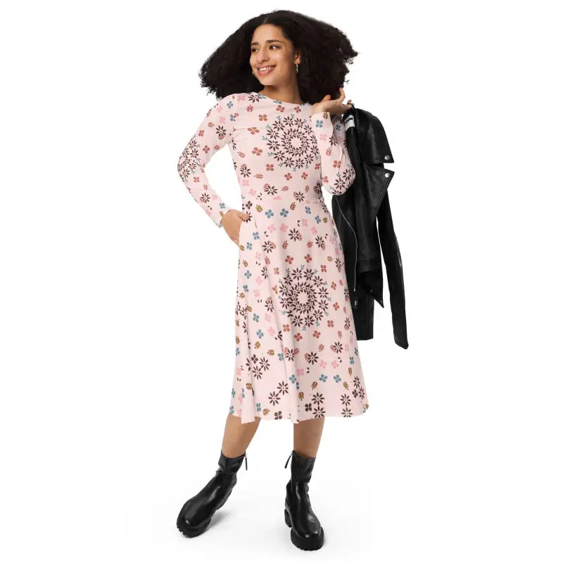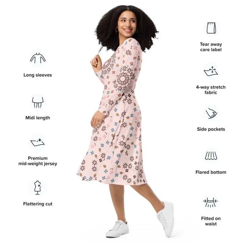 The lively floral design on this pink long sleeves dress is nothing short of enchanting. Bright flowers dance across the soft fabric, creating a mesmerizing effect that draws admiring glances. The harmonious color palette ensures that you'll shine wherever you go!