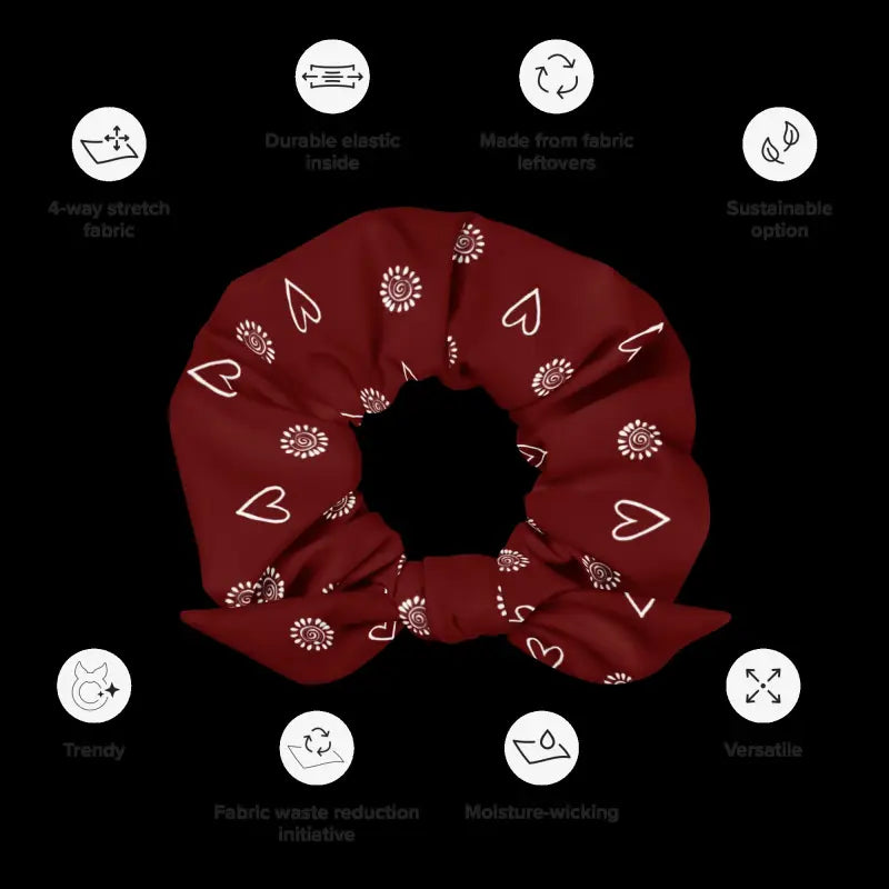 - Eco-friendly maroon recycled scrunchie made from high-quality recycled fibers—feel good about every style