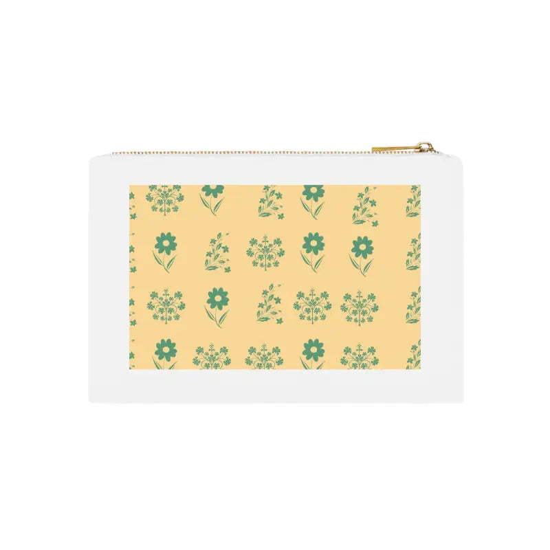 Flowers on yellow Cosmetic Bag. Made with 100% cotton canvas, this cosmetic bag brings out the chic in your style. Coming in at 9.5” by 7” size, it features a gold color zipper along with a lined interior for both added fashion points as well as durability. Add your own design and travel with all your supplies or valuables stylishly organized.