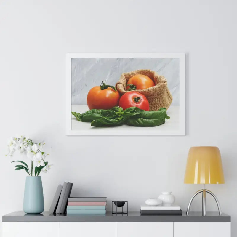 Make every glance a flavorful escape to sun-drenched fields with this framed horizontal poster featuring the ultimate combination: fresh tomatoes and basil leaves. If your decor feels dull or lacks life, this eye-catching piece instantly livens up kitchens, dining rooms, and living spaces with a bold Mediterranean touch. The vivid print becomes a conversation starter, a daily source of inspiration, and a lively boost of personality for women’s fashion-inspired interiors craving that on-trend food-themed flair.