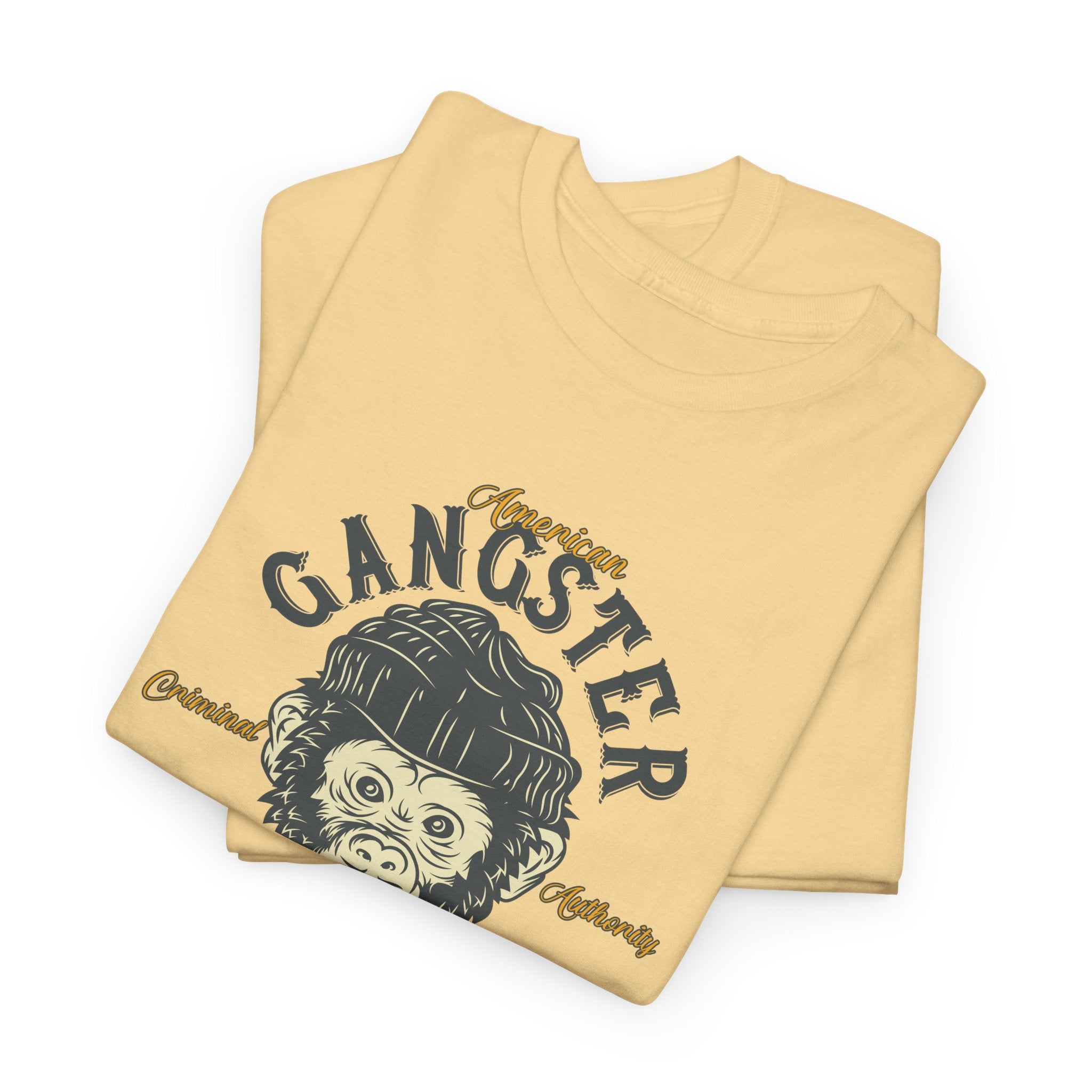 Gangster Brooklyn monkey, Unisex Heavy Cotton Tee. The unisex heavy cotton tee is the basic staple of any wardrobe. It is the foundation upon which casual fashion grows. The specially spun fibers provide a smooth surface for premium printing vividity and sharpness. No side seams mean there are no itchy interruptions under the arms. The shoulders have tape for improved durability.