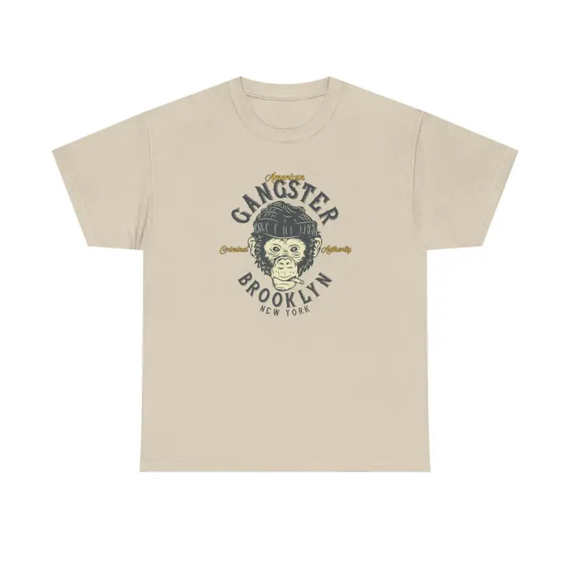 Gangster Brooklyn Monkey T-Shirt Heavy Cotton Unisex Tee - DipaliZ
