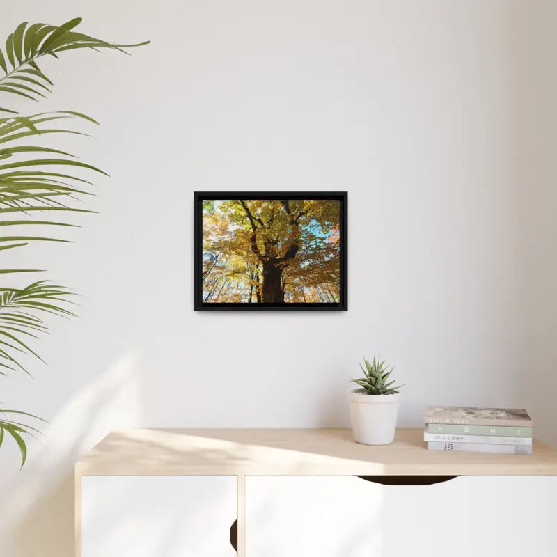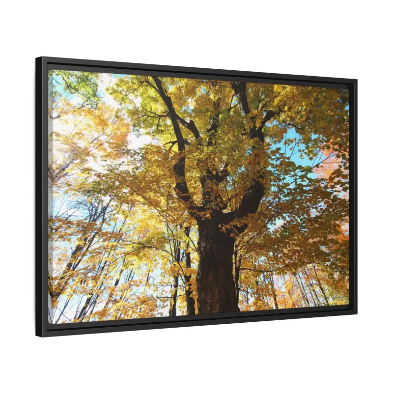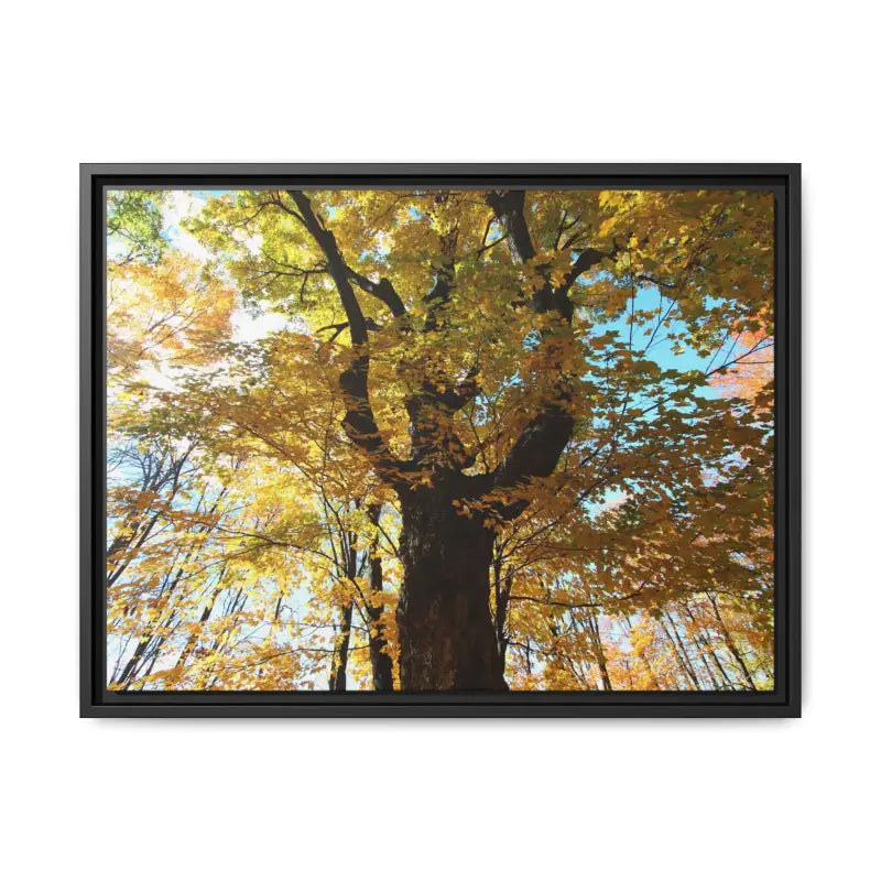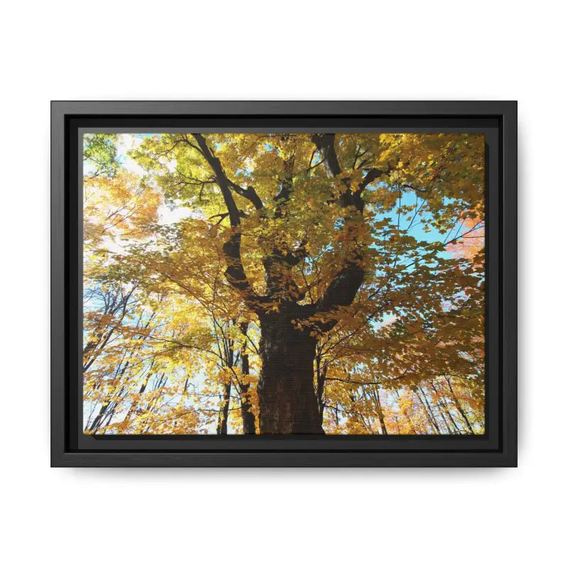 Matte Canvas, Black Frame| giant tree in Autumn with yellow leaves| DipaliZ