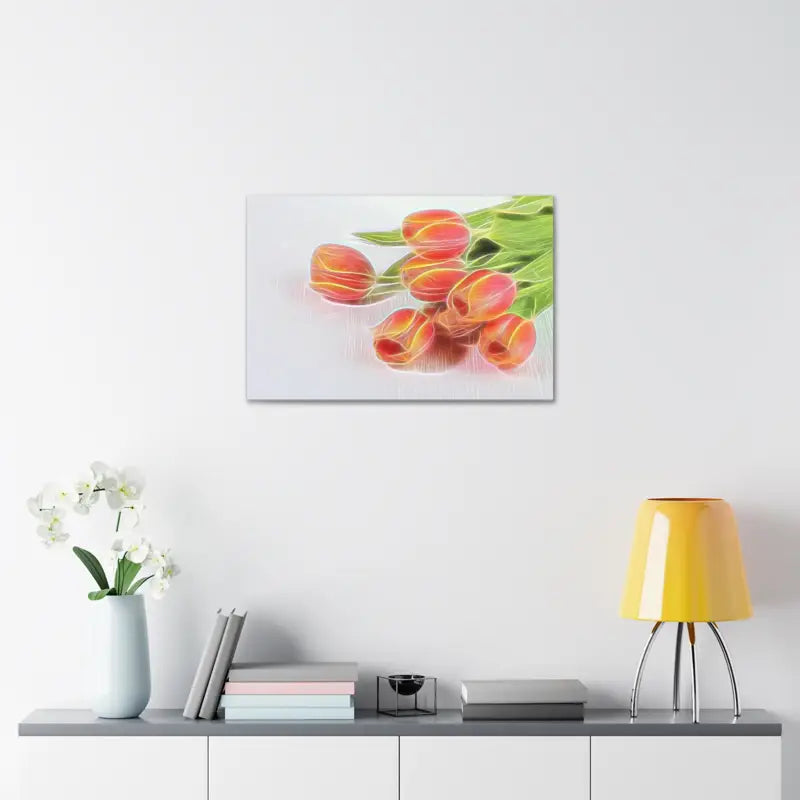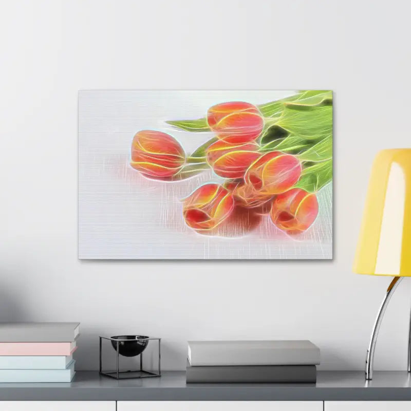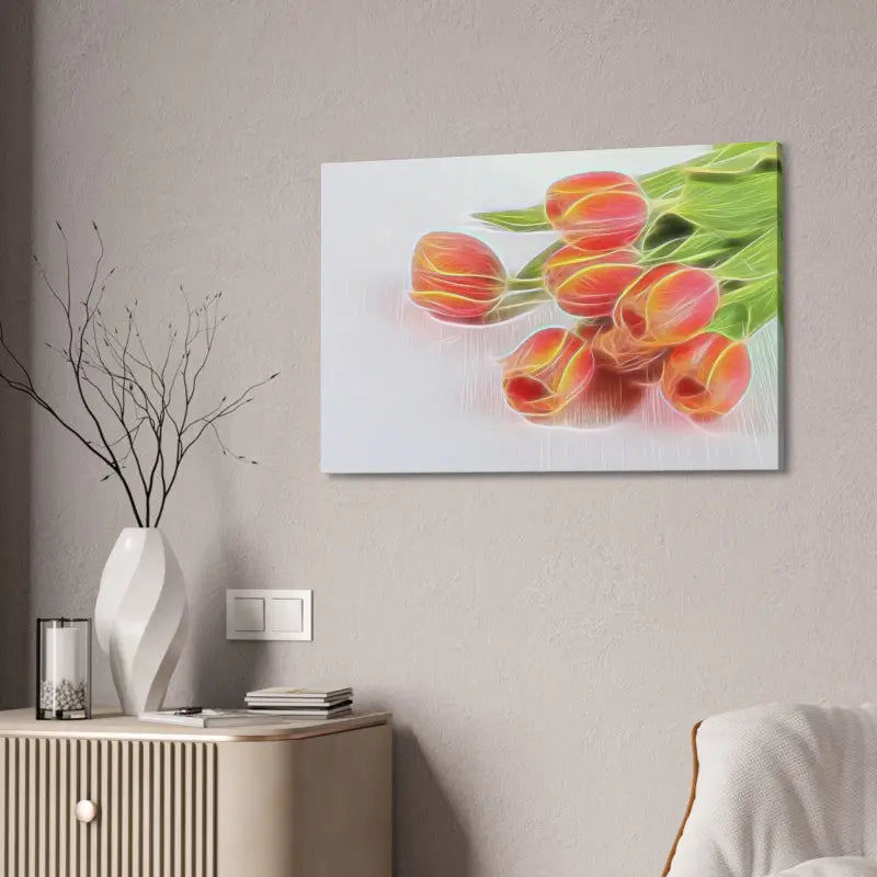 Bring home the magic of glowing tulips—give any wall a radiant pop of color and shine with this gorgeous semi glossy canvas. Don’t miss your chance to elevate your style and create a space that truly wows!