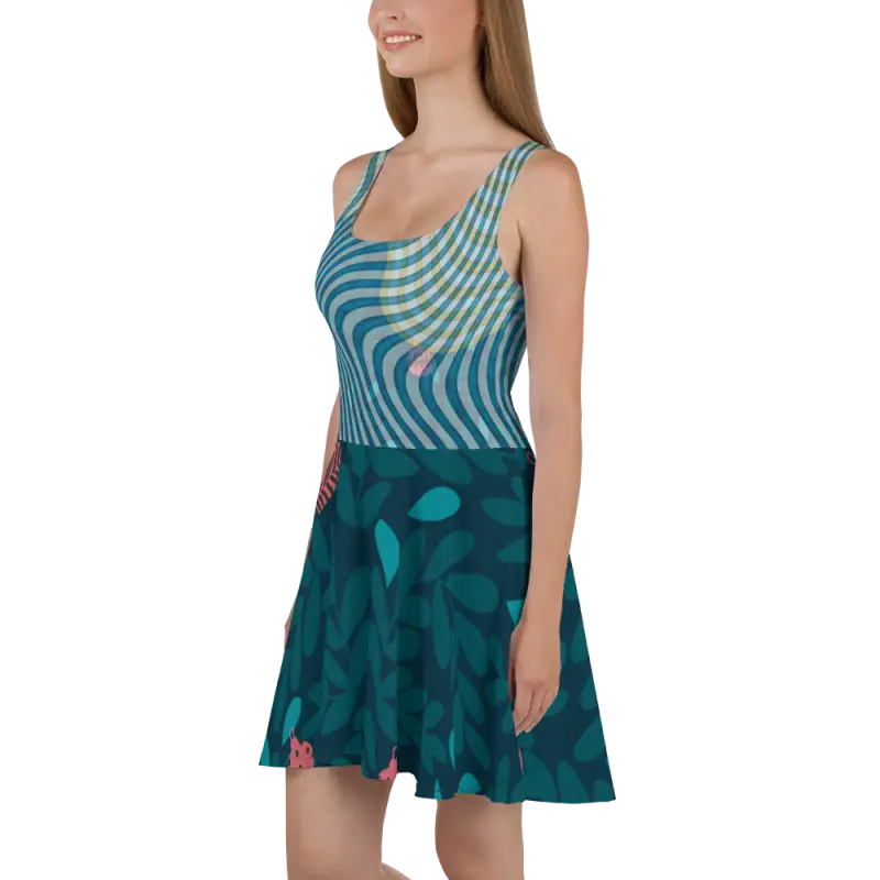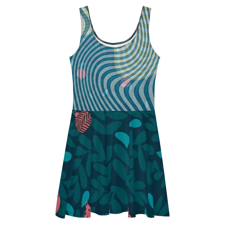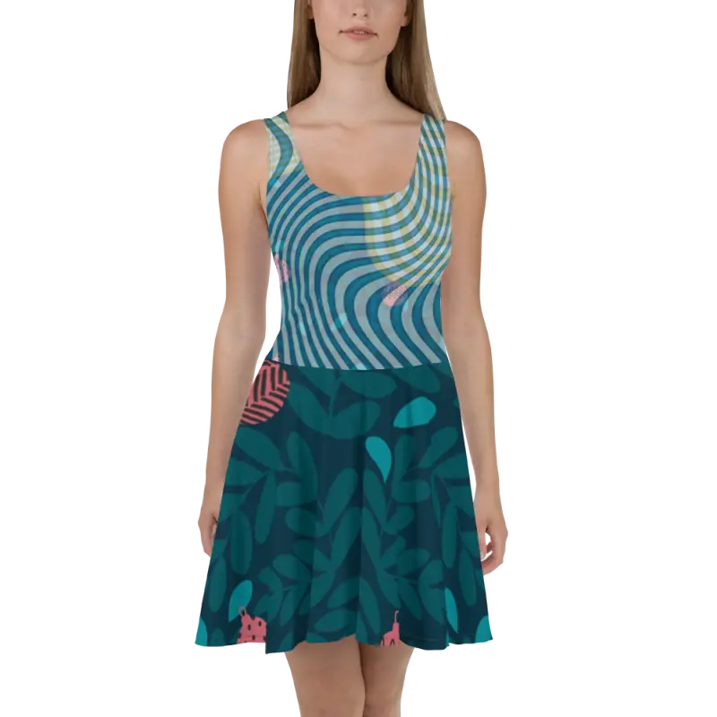 Wear it on a sunny brunch date, at the weekend markets, or out for cocktails with friends. This versatile piece transitions effortlessly, pairing it with either trendy sneakers or sleek heels—it’s bound to complete any outfit perfectly. Unlike ordinary dresses, the Leafy Green Wavy Skater Dress merges artistry and fashion, promising a unique fashion experience that will distinguish you from the crowd.