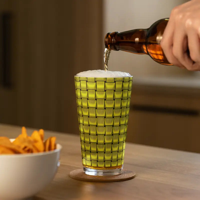 Elevate your glassware game and let every occasion shine when you sip from this standout shaker pint glass. With its iconic green weaved pattern, superior durability, and endless versatility, it’s the pint glass you’ll reach for every time. Don’t wait—grab your shaker pint glass now and bring style, functionality, and fun to your next drink!