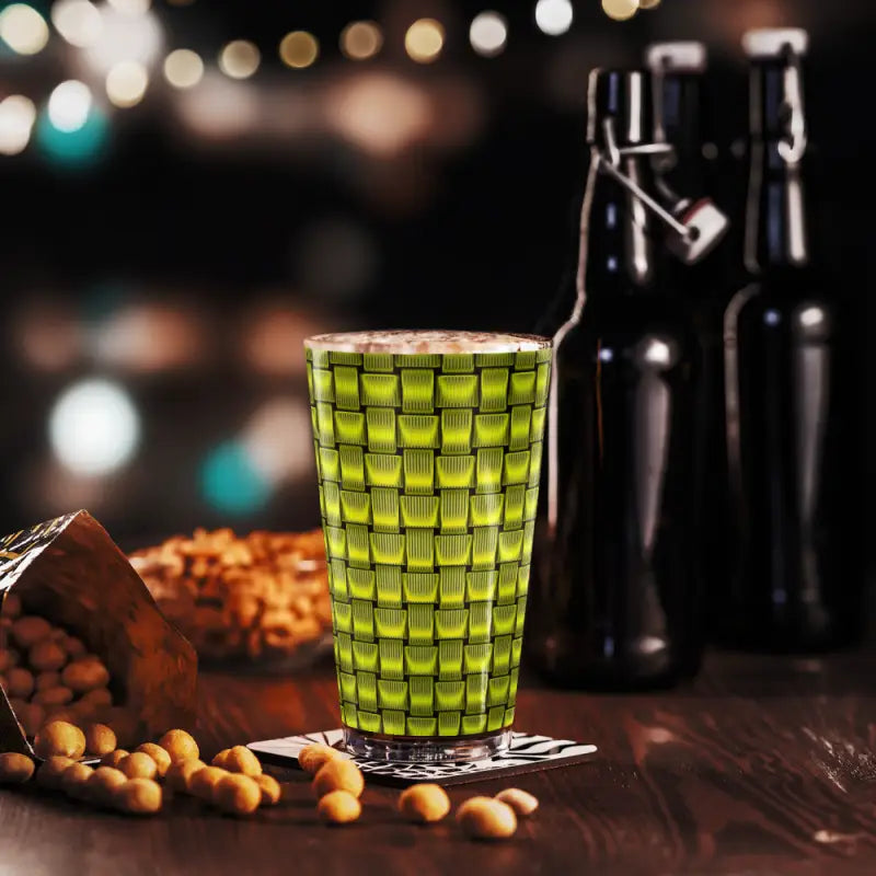 Shaker Pint Glass Green Weave Pattern Cool Drinks Bar - DipaliZ