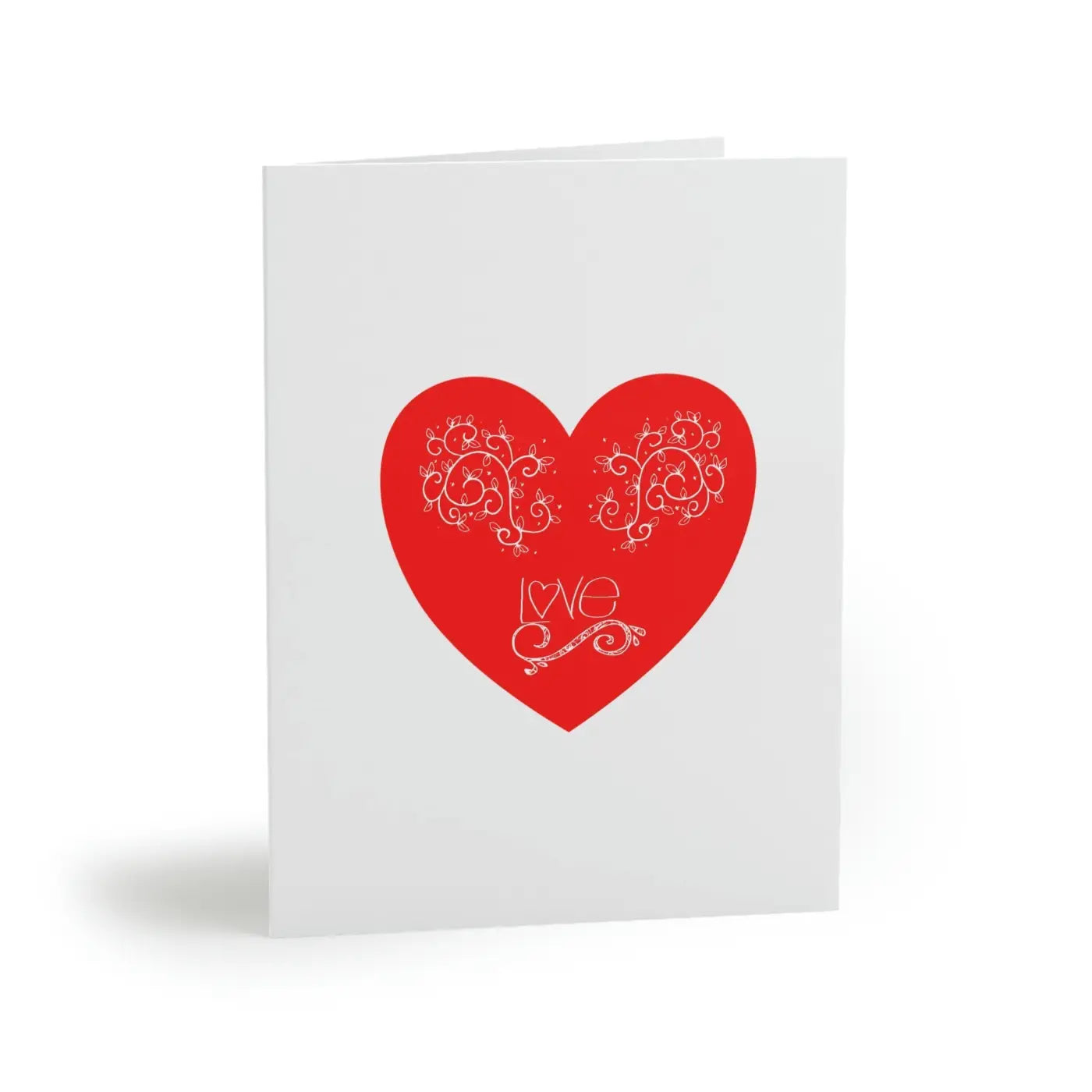 • Irresistible greeting cards featuring a striking red heart design that screams love.