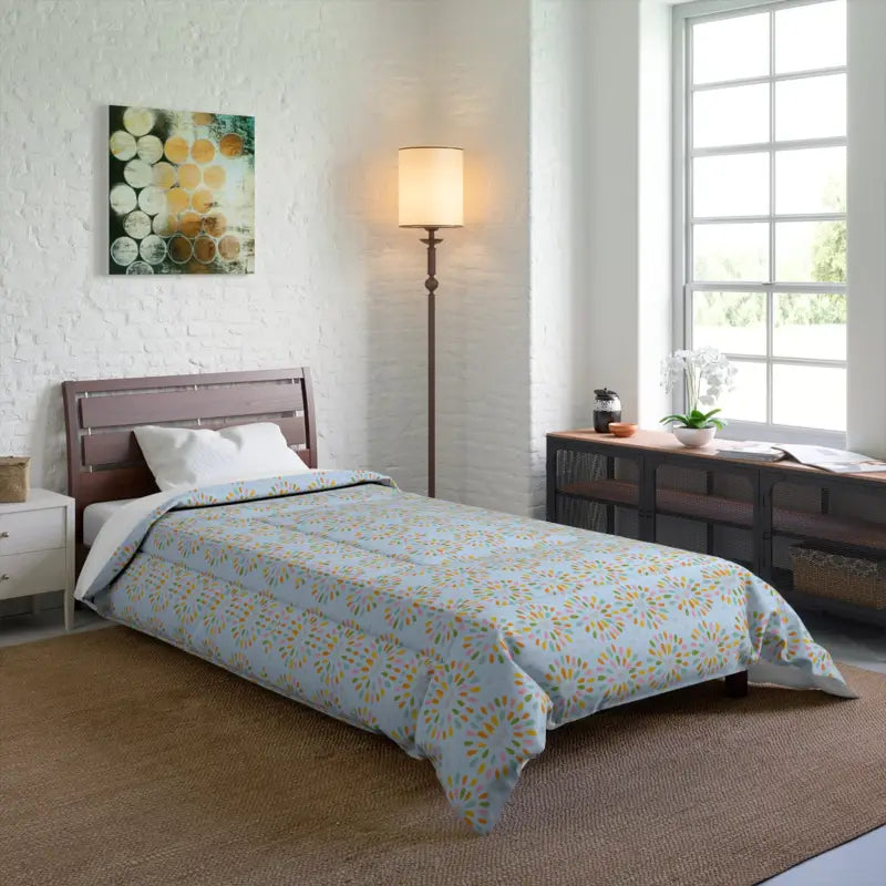 Colorful heart pattern Comforter. Comfy, fluffy, and warm. Cozy up underneath our snug blanket for a deep and relaxing sleep. Highlight these premium quality blankets with some unique designs and your home will be lit up with them. This blanket is the perfect solution for cold days in bed with coffee, waiting for the morning light to peak through the window and wake up the house.