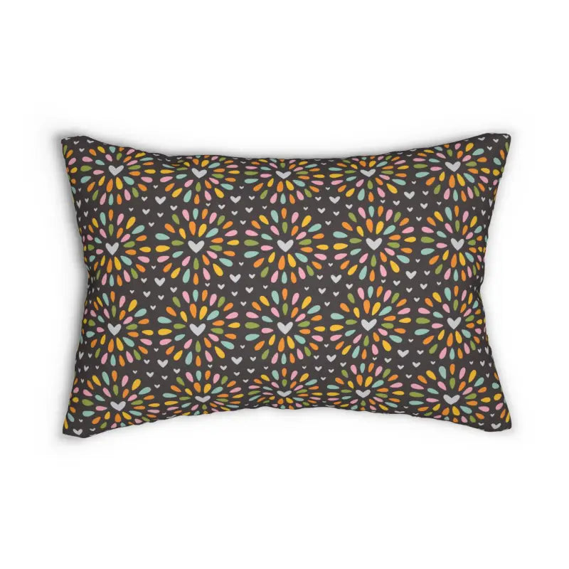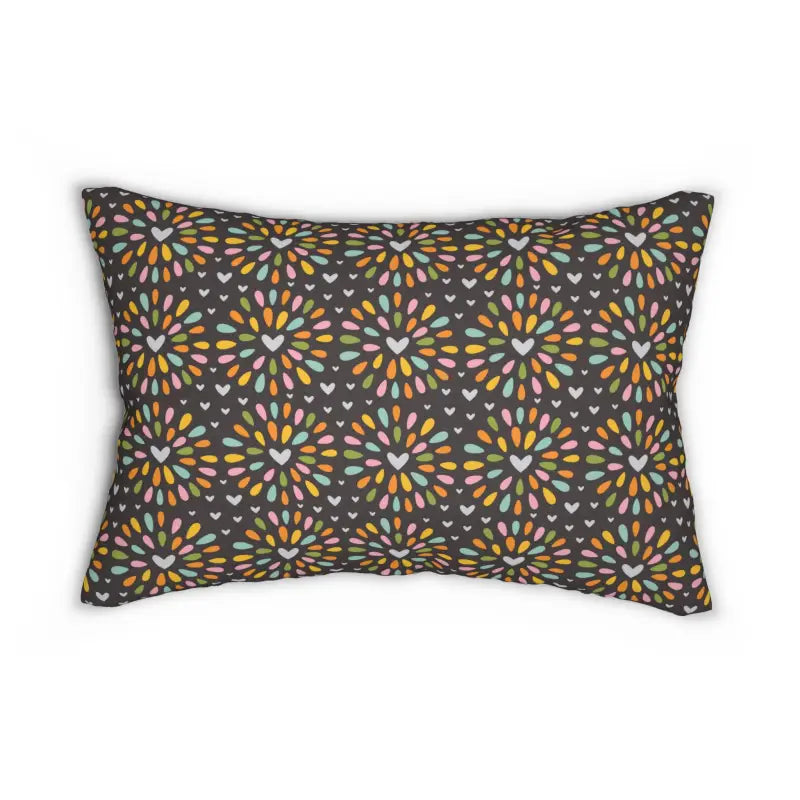 Hearts pattern, Spun Polyester Lumbar Pillow. Add this beautiful spun-polyester lumbar pillow to your home decor pieces today. It comes with a stuffing pillow included. The casing is made of a spun polyester fabric that is inherently mildew and water-resistant. You can place your design on both sides or have a different design on each side. It has a hidden beige zipper to maintain a finished and stylish look.