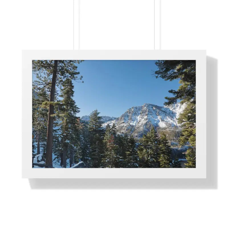 Lake Tahoe snowcapped mountains, Framed Horizontal Poster