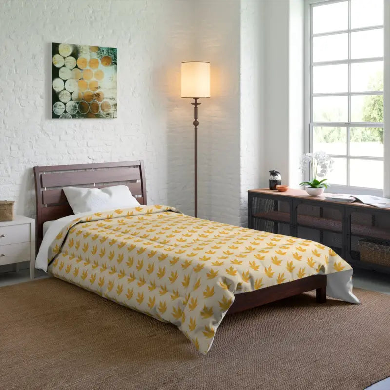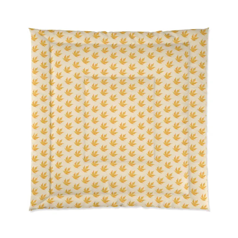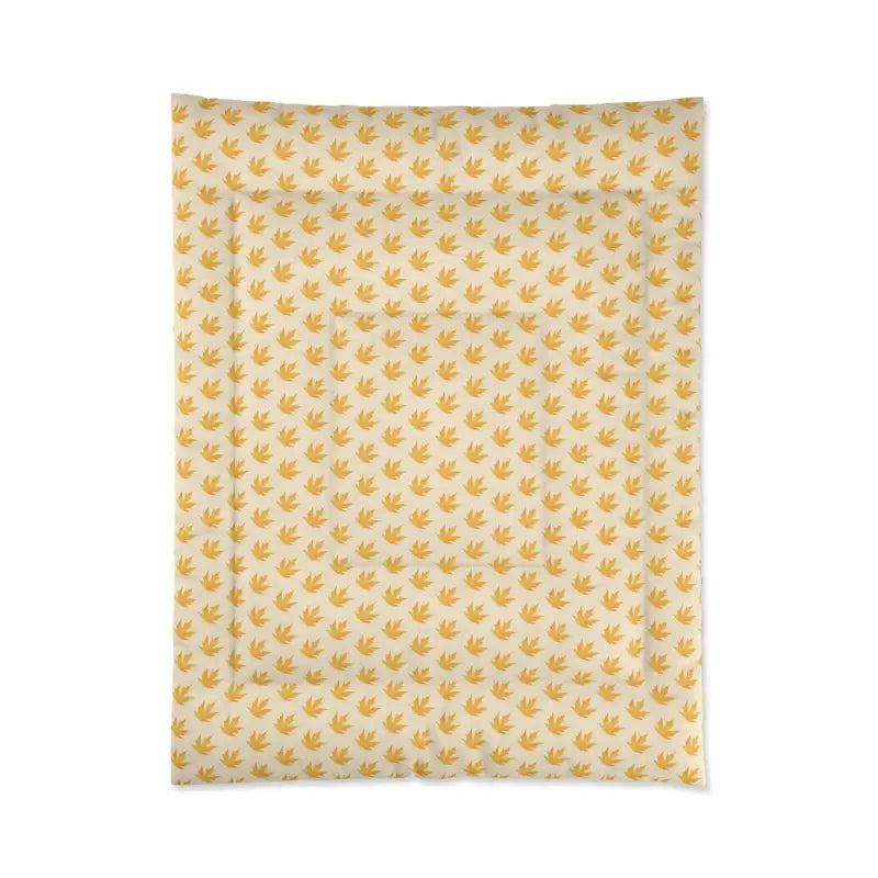 Maple leaves on cream Comforter. Comfy, fluffy, and warm. Cozy up underneath our snug blanket for a deep and relaxing sleep. Highlight these premium quality blankets with some unique designs and your home will be lit up with them. This blanket is the perfect solution for cold days in bed with coffee, waiting for the morning light to peak through the window and wake up the house.
