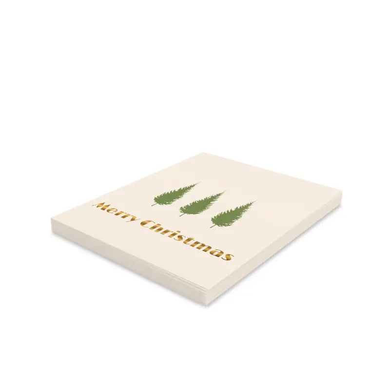 Pack of Merry Christmas, Greeting cards (8, 16, and 24 pcs). Add a unique touch to any wish with these luxurious greeting cards. Measuring at 4.25” x 5.5”, these printable cards can handle long-distance transportation with minimal risk thanks to their robust, uncoated cardstock. Available in 8-packs, 16-packs, and 24-packs - each pack comes with size-matching white envelopes for each card.