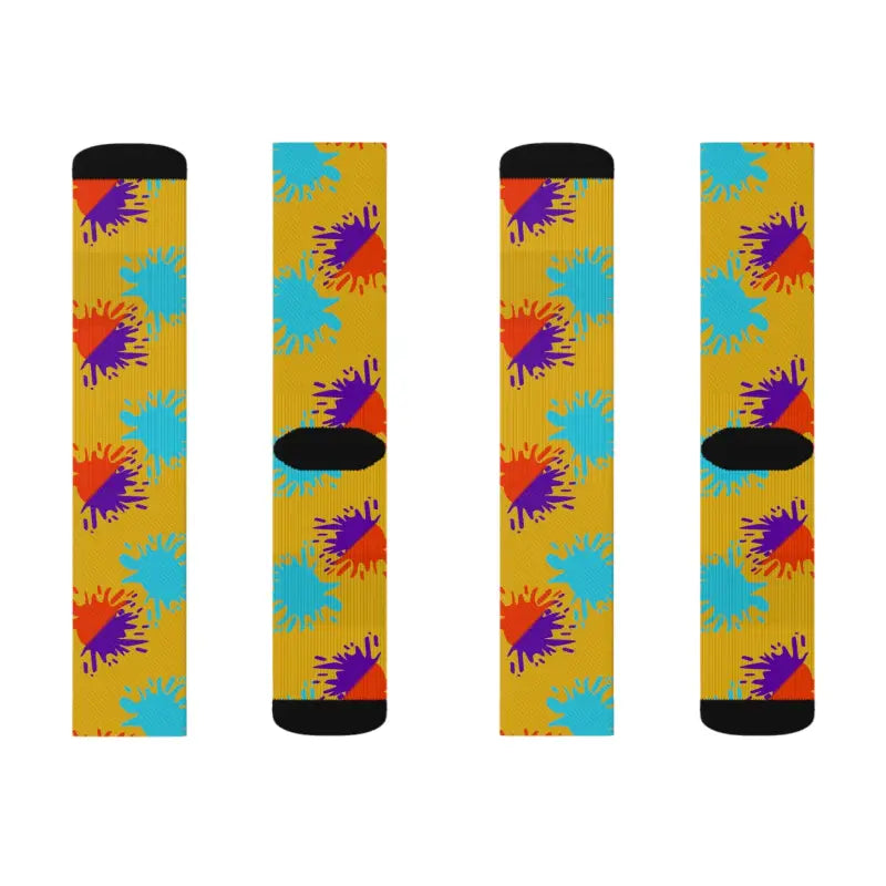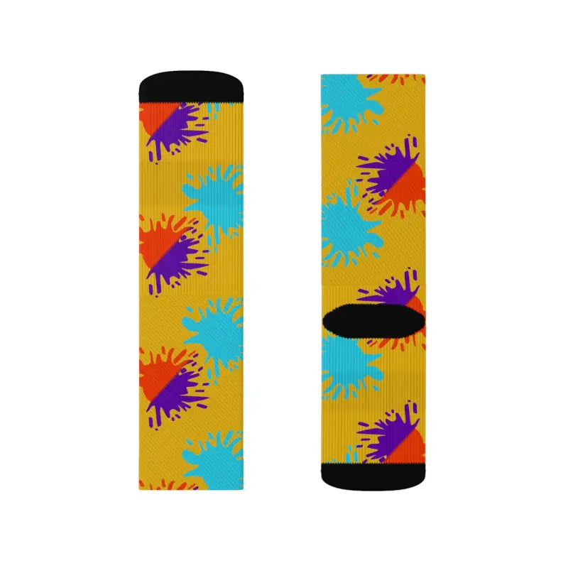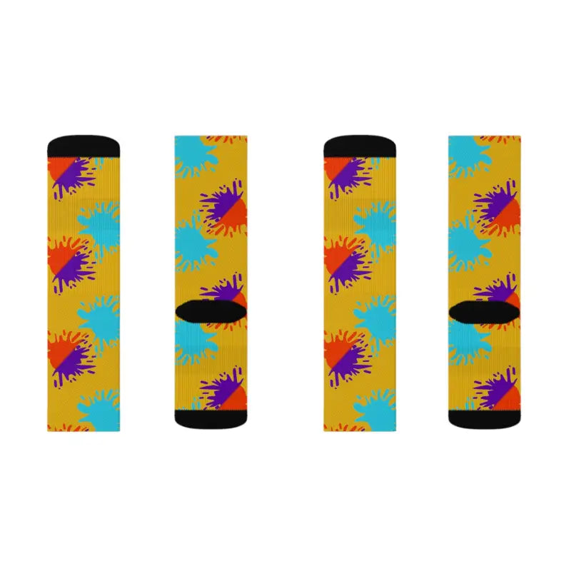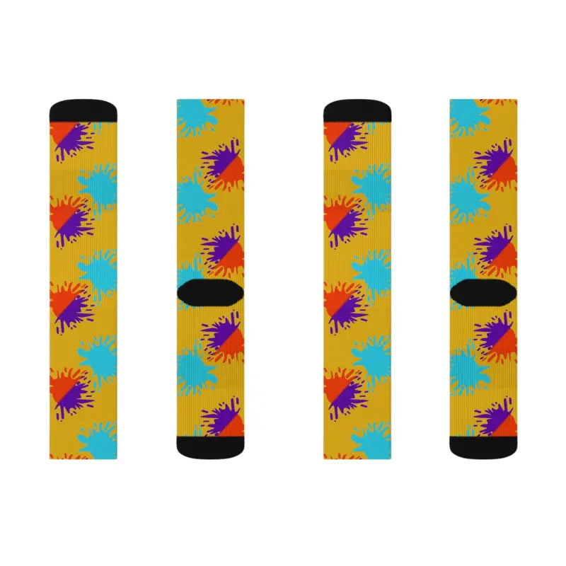 Step up your sock game and make every outfit pop with these paint splats sublimation socks—where bold style and total comfort collide!
