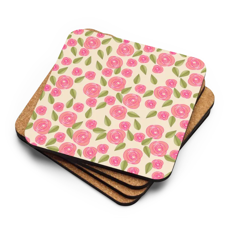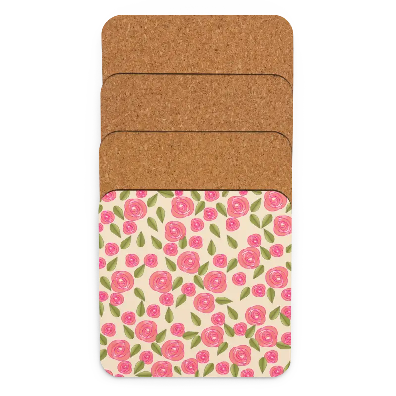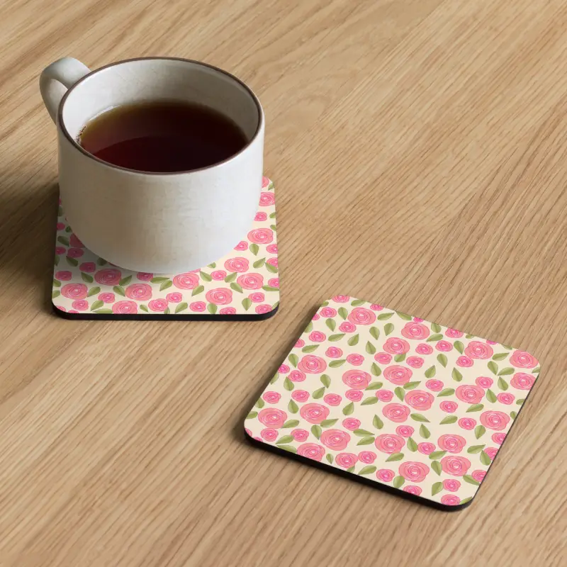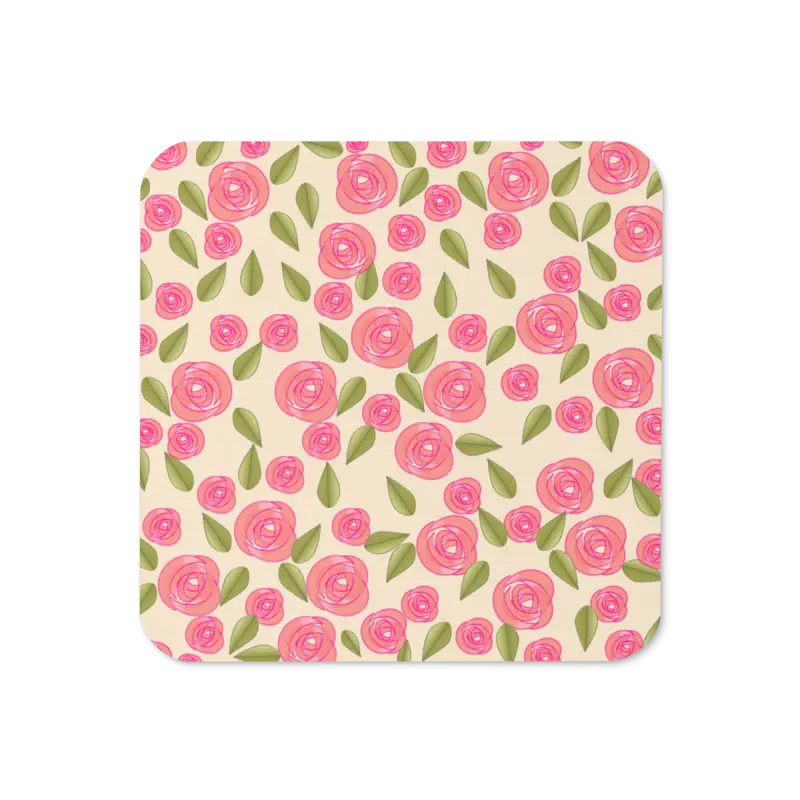 Let your living space shine with the on-trend pink roses print while enjoying the reliability of a heat resistant cork back coaster. Add this elegant must-have to your cart now and enjoy sophistication and peace of mind with every sip!