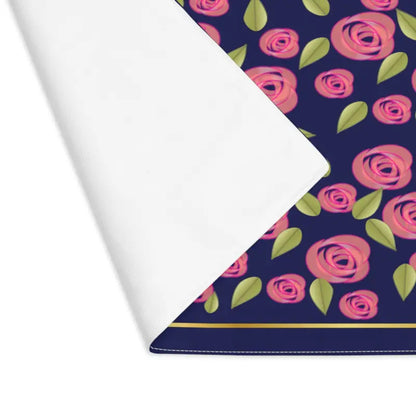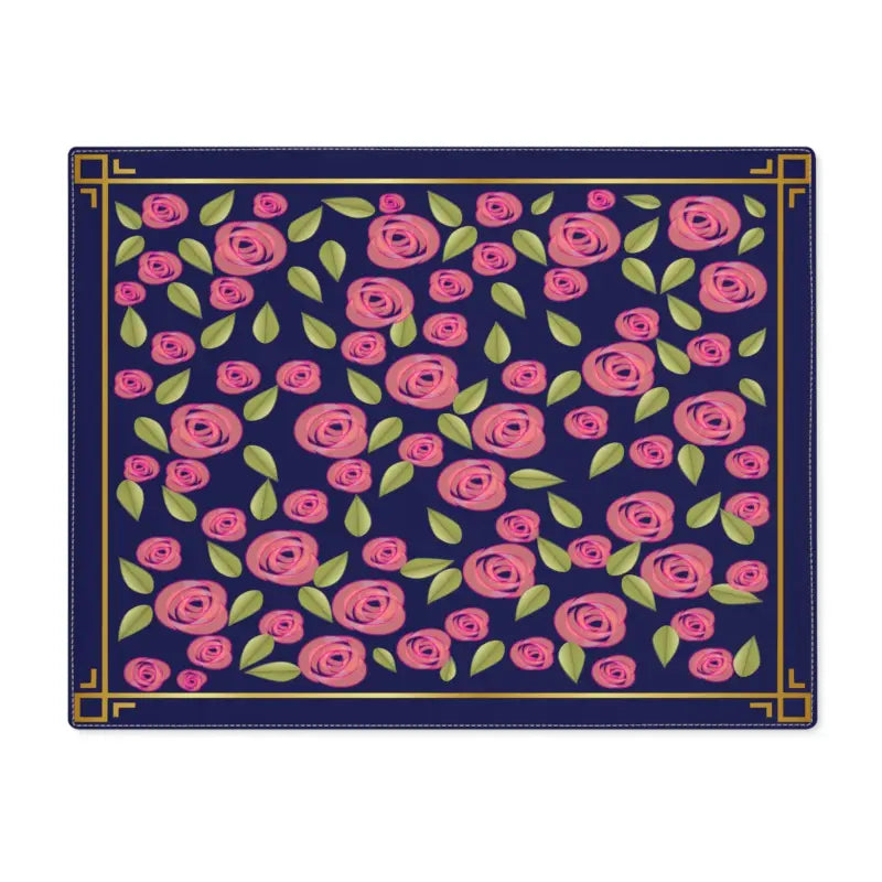 Looking to wow your guests at the next dinner party? Transform your dining space in seconds with this vibrant pink roses placemat featuring a rich navy blue background—effortlessly blending elegance and everyday durability!