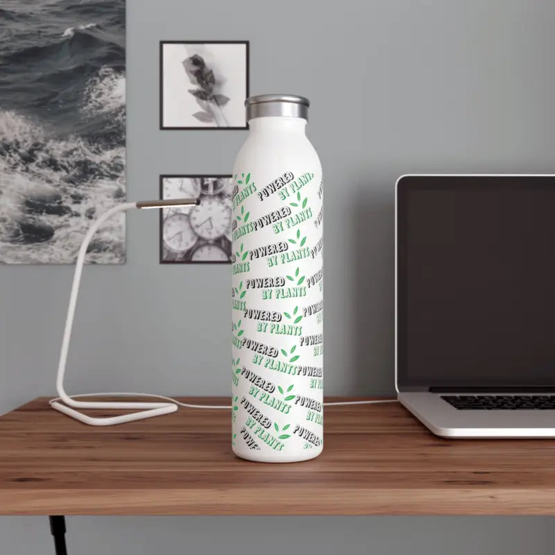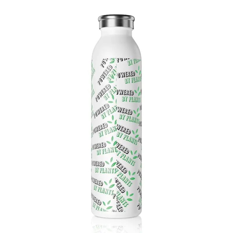 Powered by plants, Slim Water Bottle. Introducing your new favorite water bottle! Designed with your lifestyle in mind, this sleek bottle boasts a generous 20oz (0.60 l) capacity, making it perfect for staying hydrated on the go. Its chic lid adds a touch of fashion to your daily accessories, while the double-wall stainless steel frame with a matte finish ensures durability and style. Utilizing vacuum insulation technology, this bottle keeps your beverages at their ideal temperature for hours on end, whether it's piping hot coffee or refreshing cold water. Complete with a silver cap for added convenience and a glossy print for extra flair, this water bottle is a must-have for anyone who values both function and fashion.