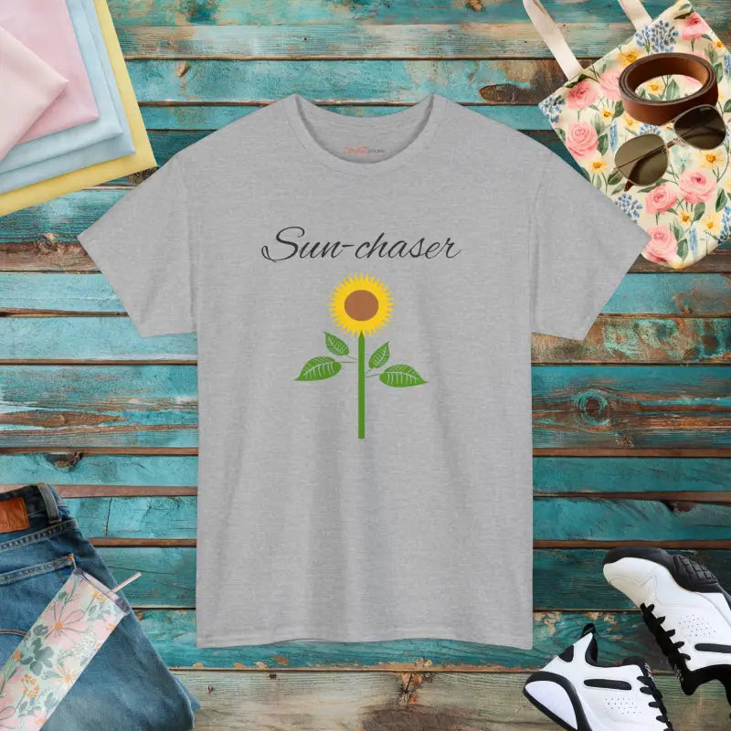 Sun chaser — a sunflower-printed cotton tee that feels like a warm afternoon on your skin. Lightweight but sturdy, the breathable 100% cotton fabric carries a bold, hand-drawn sunflower motif that sits confidently on the chest and sleeves. Wear it when you’re chasing light at early morning markets, tending rooftop plants, or packing for a spontaneous road trip. The classic crew neckline and relaxed fit let you layer it under jackets or wear it solo on sunlit days. Small natural flecks in the unprocessed color give each shirt a bit of honest texture, while clean, crisp print techniques keep the artwork vibrant wash after wash. It’s built to travel with you — soft at first touch, resilient over time, and quietly rooted in thoughtful production values.