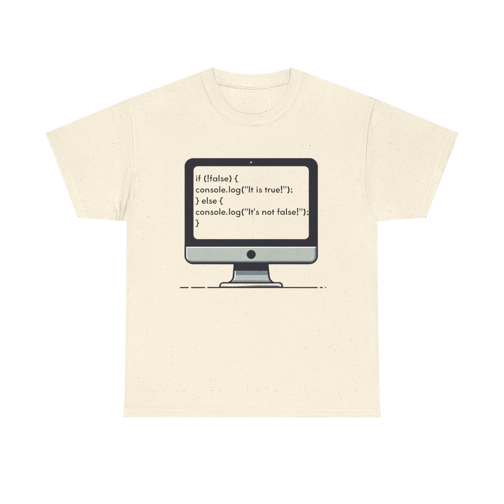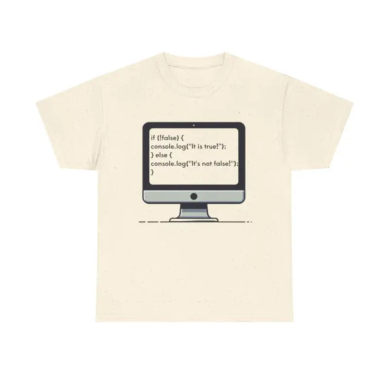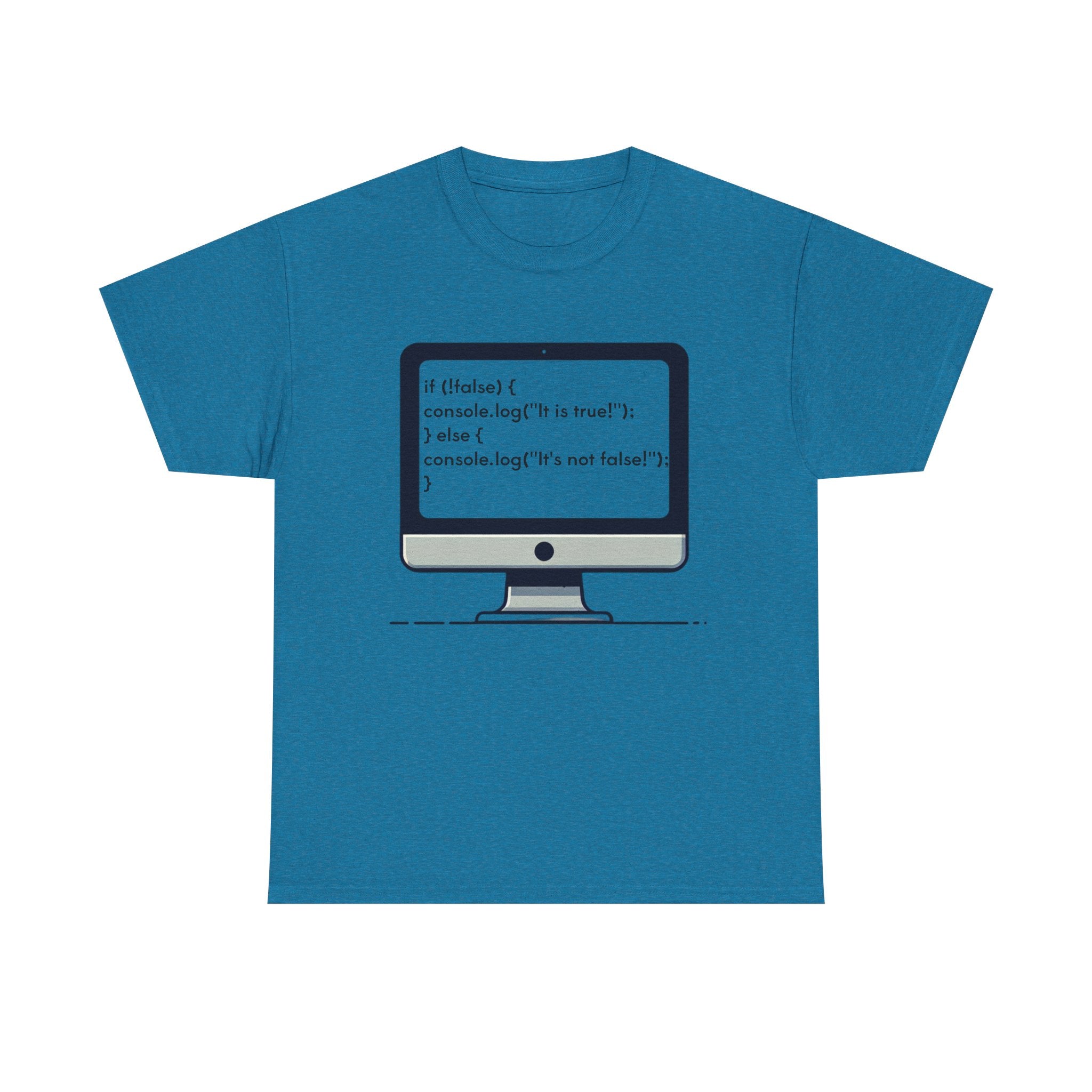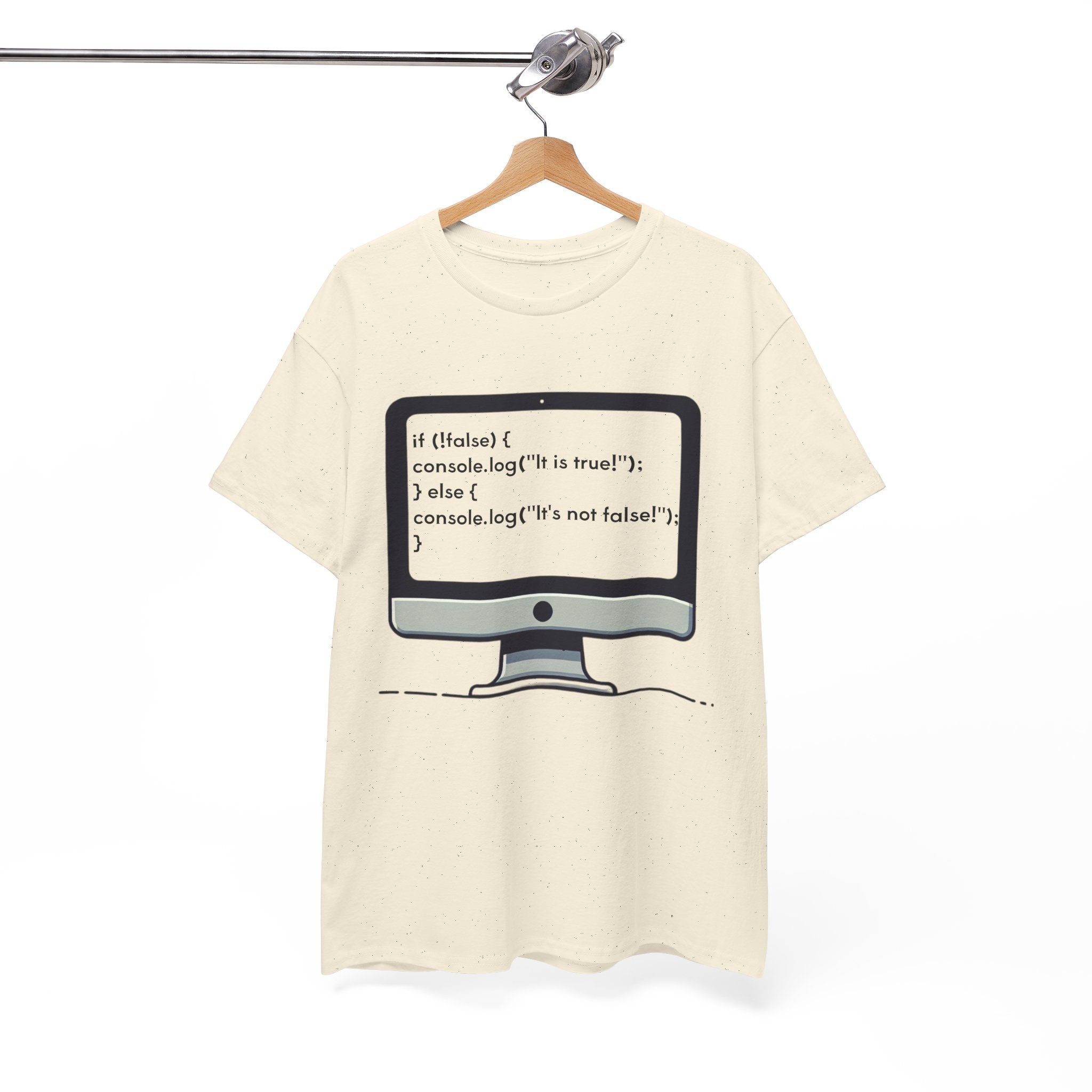 Javascript Programming, Unisex Heavy Cotton Tee.  The unisex heavy cotton tee is the basic staple of any wardrobe. It is the foundation upon which casual fashion grows. The specially spun fibers provide a smooth surface for premium printing vividity and sharpness. No side seams mean there are no itchy interruptions under the arms. The shoulders have tape for improved durability.