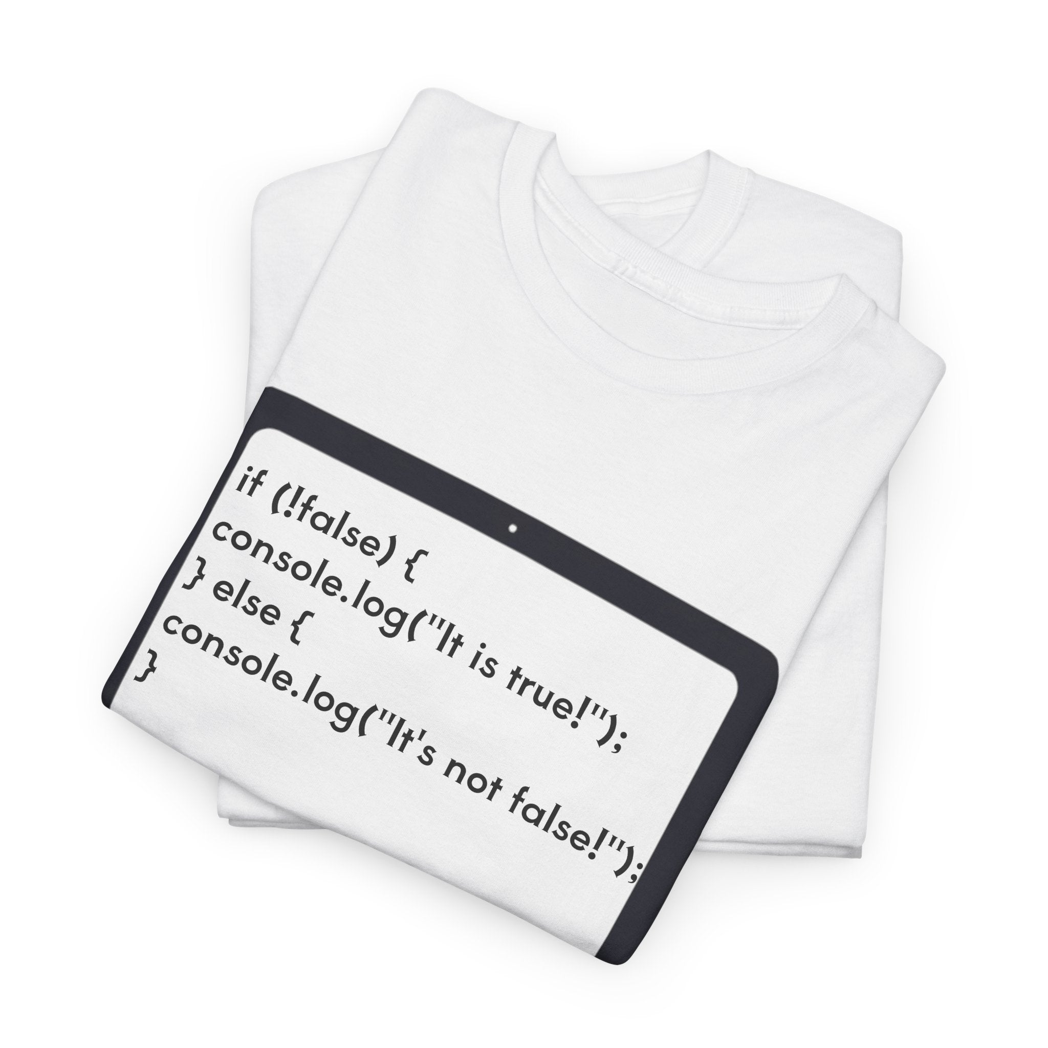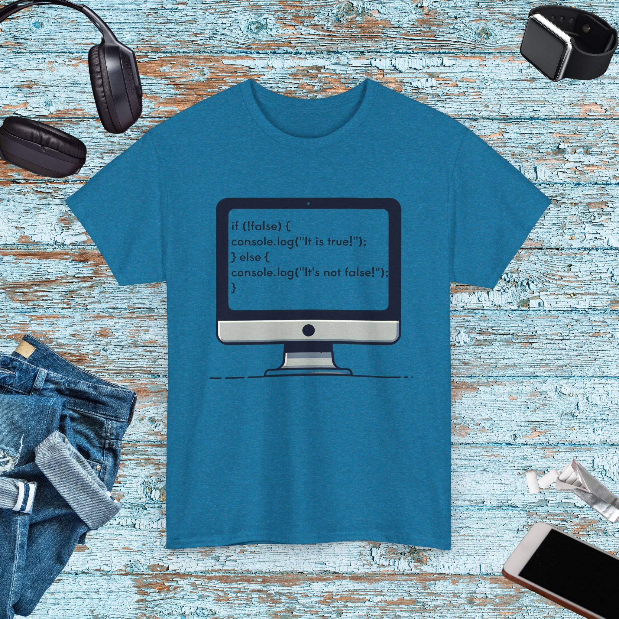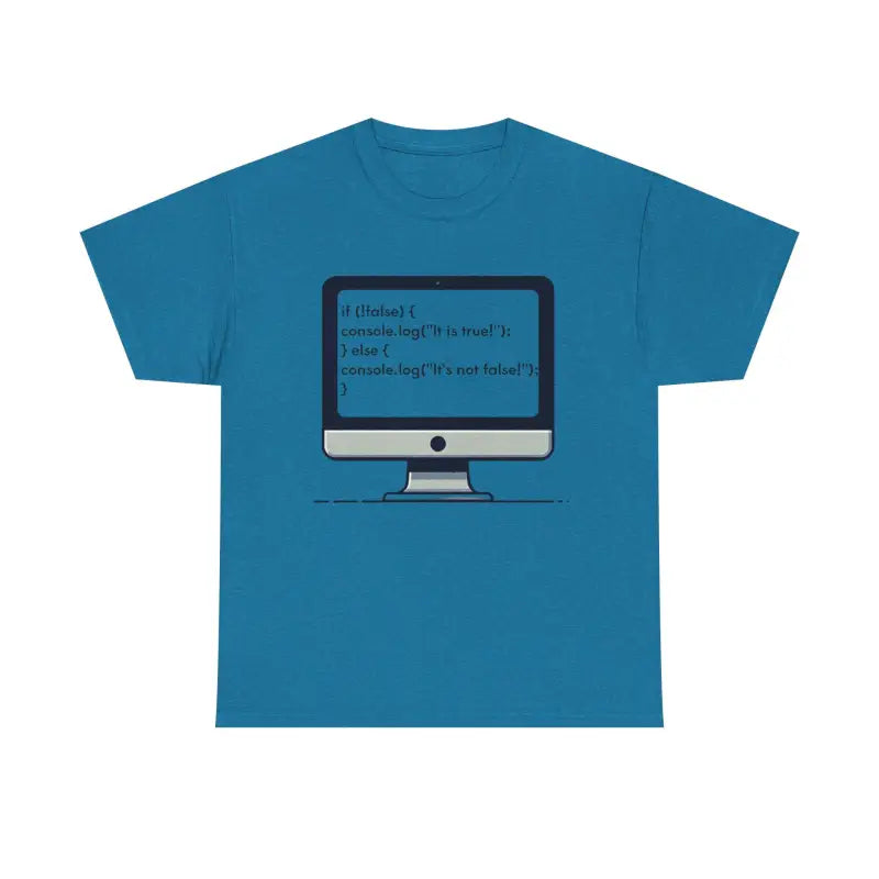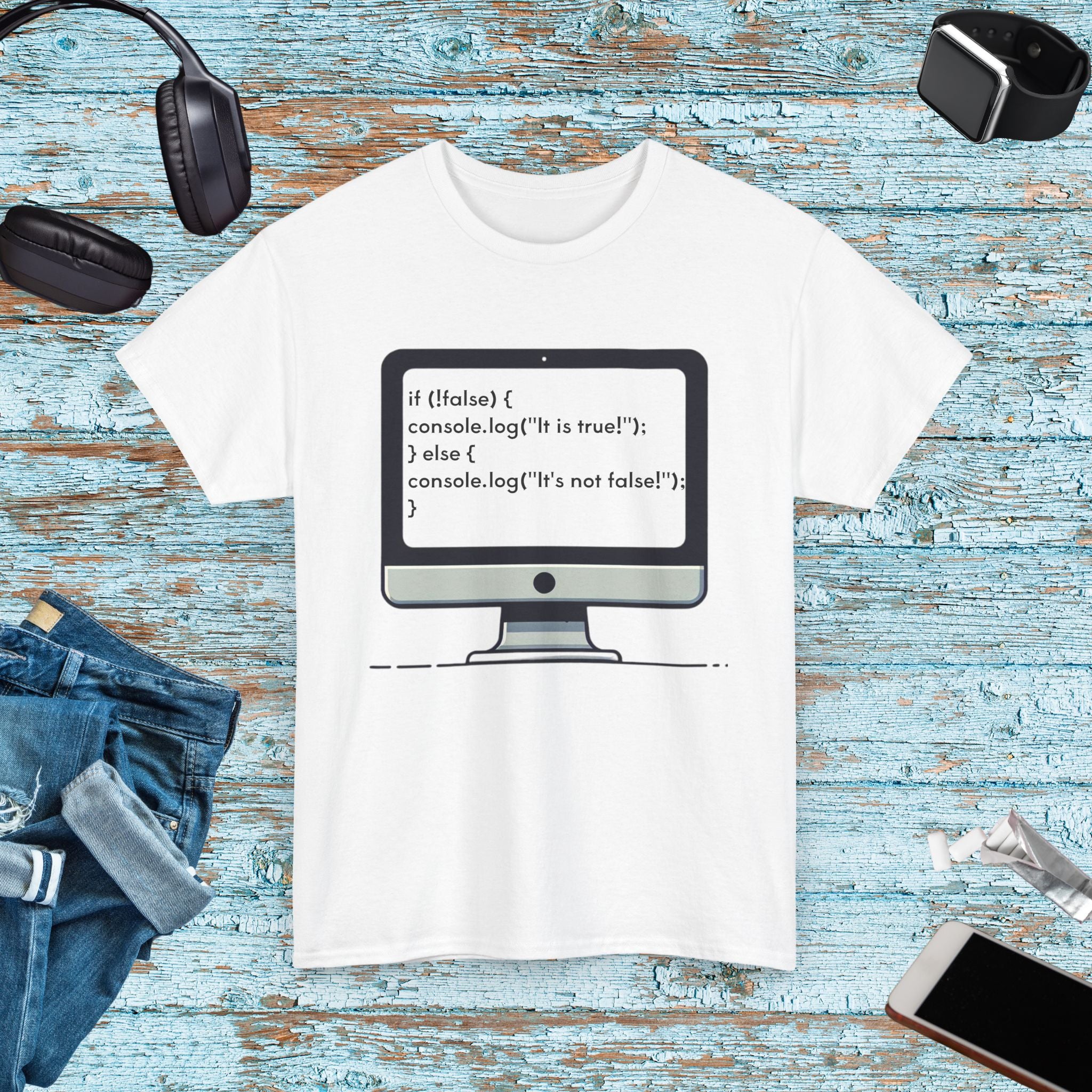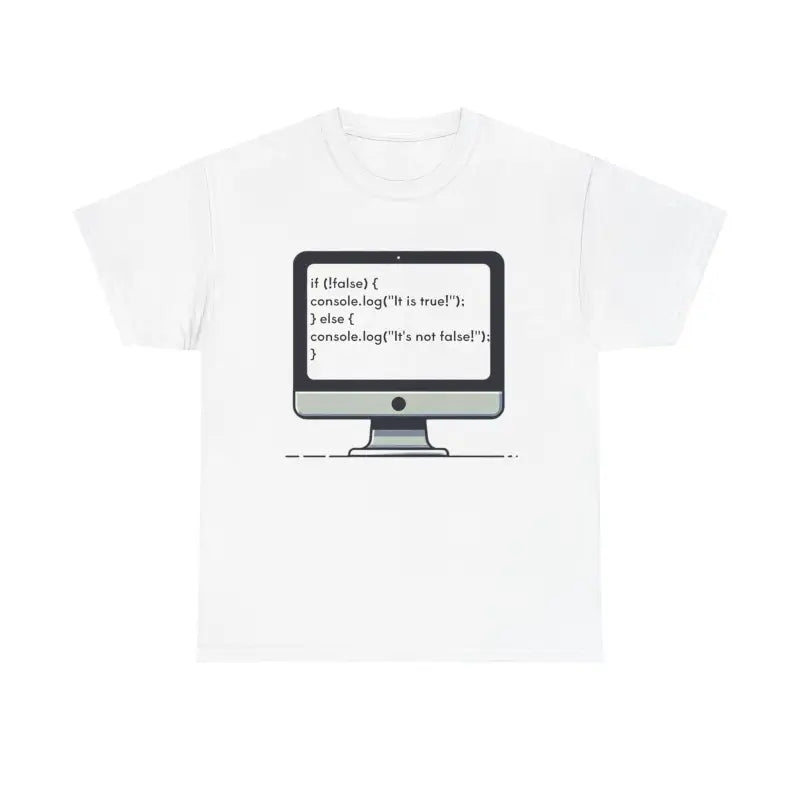 Javascript Programming, Unisex Heavy Cotton Tee.  The unisex heavy cotton tee is the basic staple of any wardrobe. It is the foundation upon which casual fashion grows. The specially spun fibers provide a smooth surface for premium printing vividity and sharpness. No side seams mean there are no itchy interruptions under the arms. The shoulders have tape for improved durability.