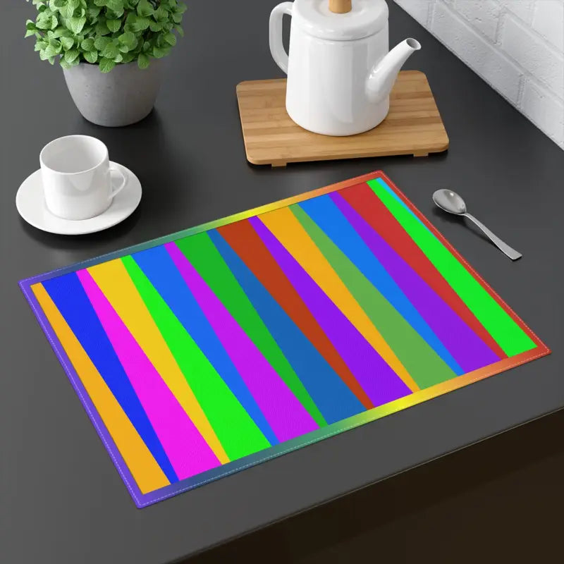 Rainbow Stripes Placemats - Vibrant Cloth Table Decor - DipaliZ