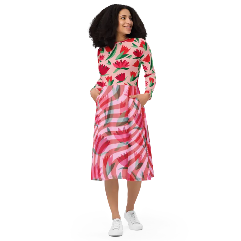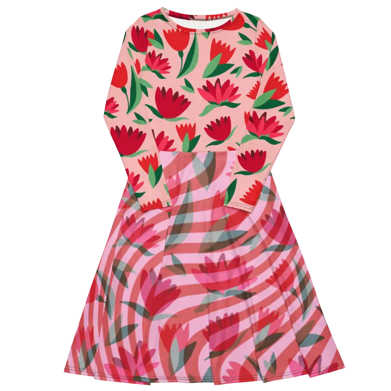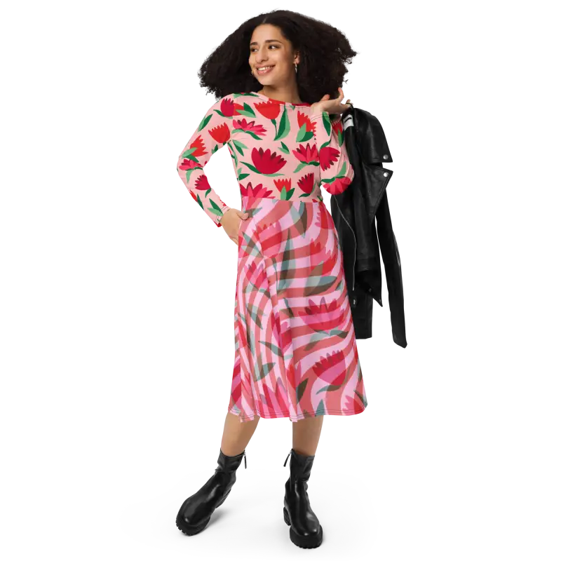 Fall in love with the Red Flower Stripes Long Sleeve Midi Magic Dress, and let it become your go-to piece for those days when you want to feel extraordinary. Grab yours today and transform your wardrobe with a perfect fusion of style, comfort, and verve. This dress will not just earn you compliments; it will redefine how you express your chic persona, making it an irresistible must-have!