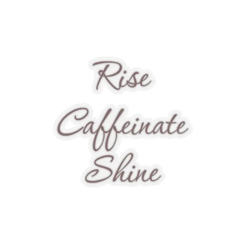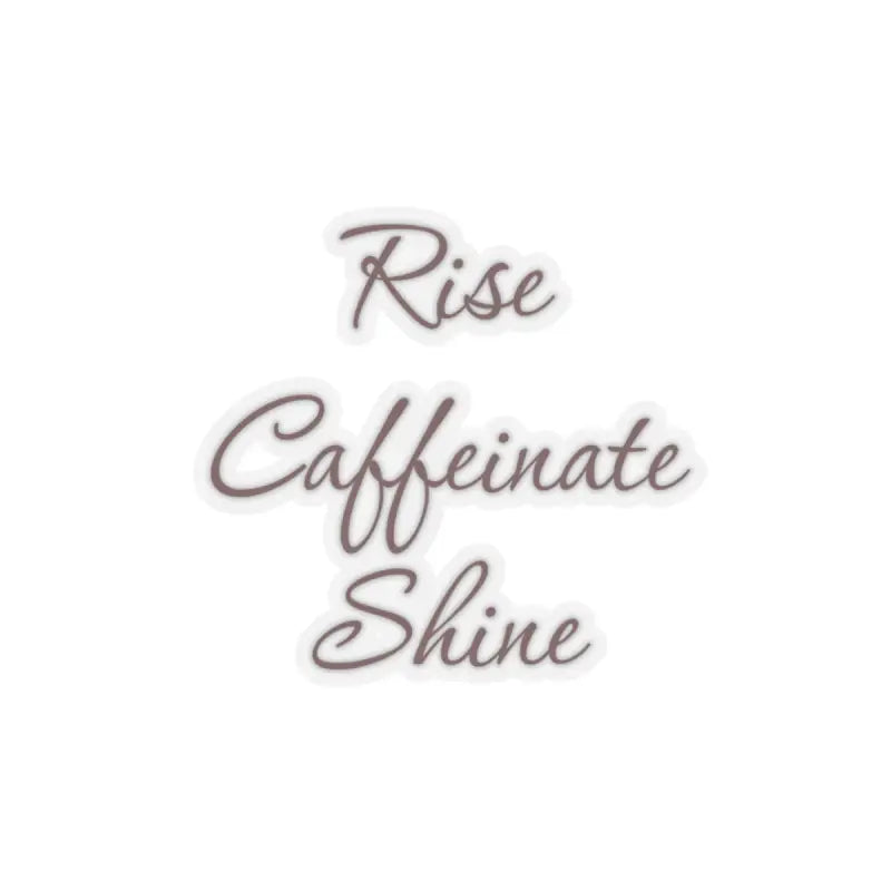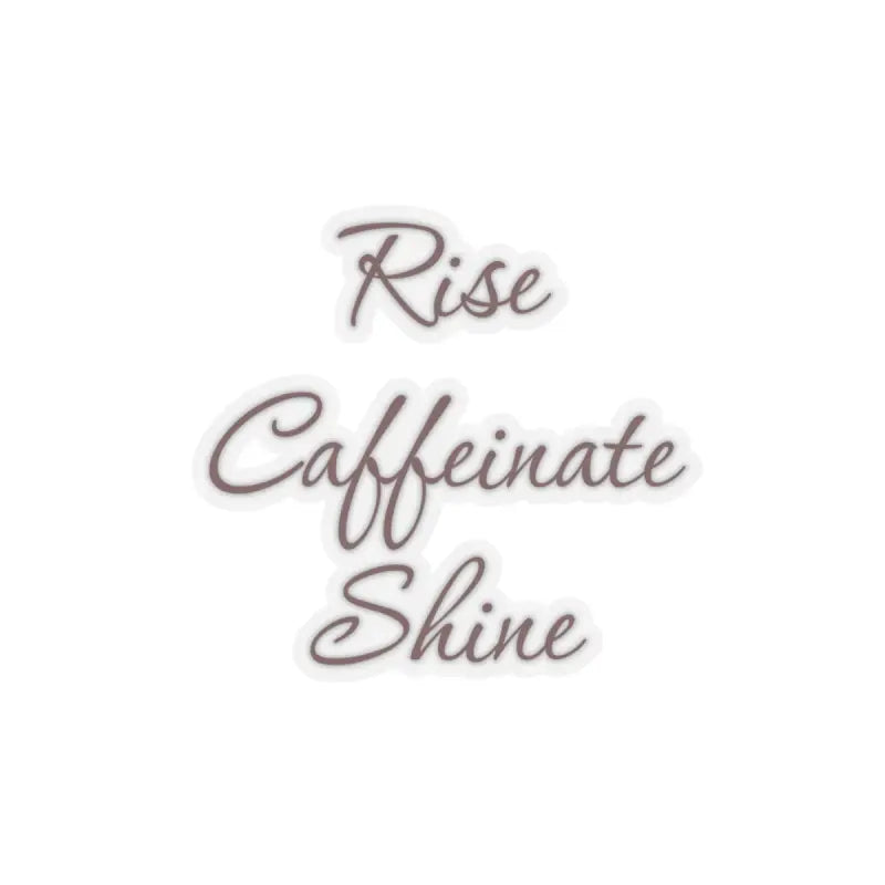 Rise caffeinate shine, Kiss-Cut Stickers. Introducing our kiss-cut stickers, crafted from 100% vinyl and adorned with 3M glue for a secure hold. Available in four sizes, these stickers come in both white and transparent options. The grey adhesive on the left side is specifically designed for white stickers, ensuring a seamless blend. Perfect for indoor use, please note that these stickers are not waterproof, adding a touch of charm to your personal space or belongings.