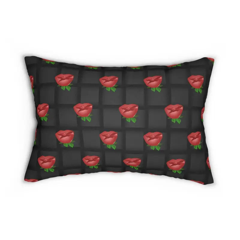 Spun Polyester Lumbar Pillow - Black Roses Design - DipaliZ