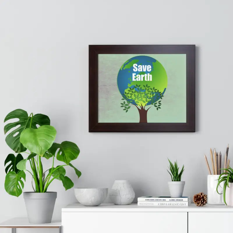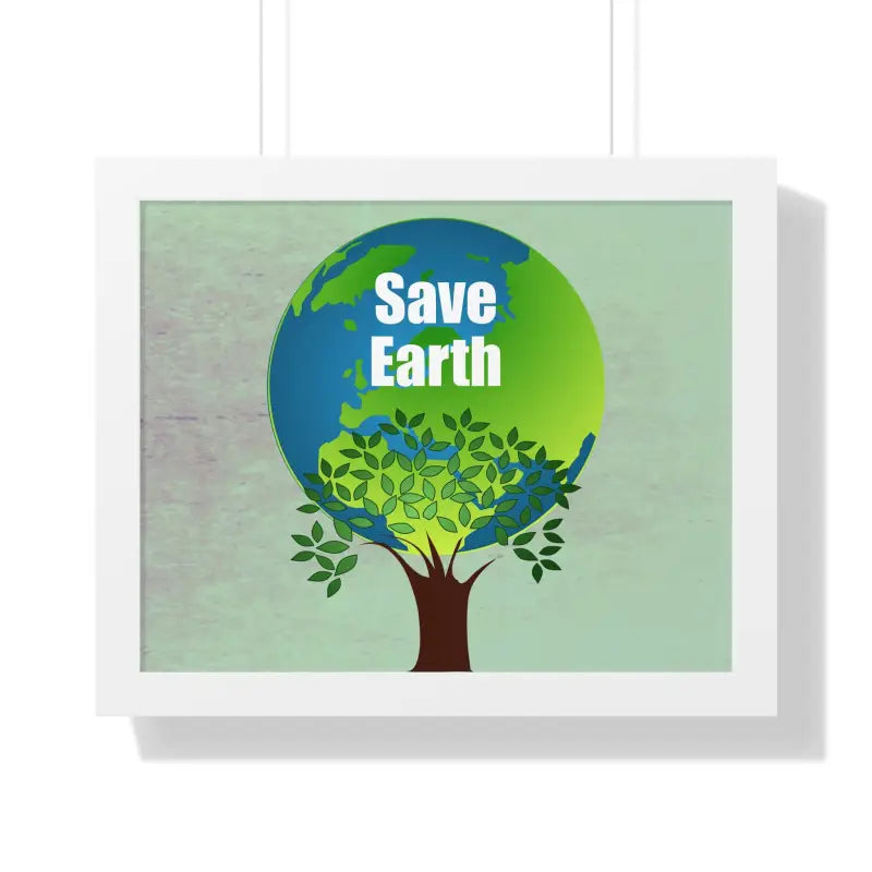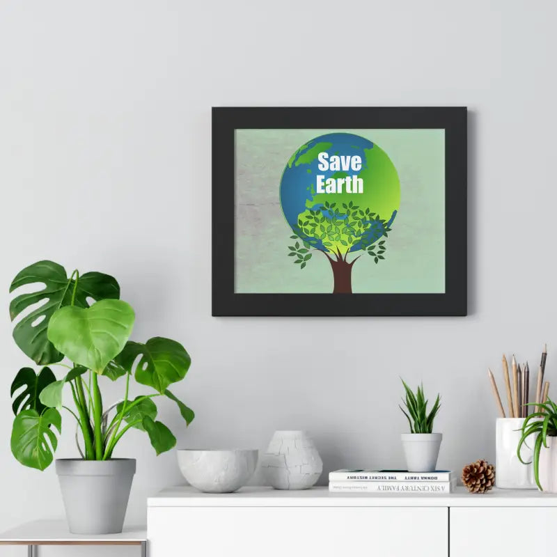 Save Earth Framed Horizontal Poster - Eco Art Decor - DipaliZ