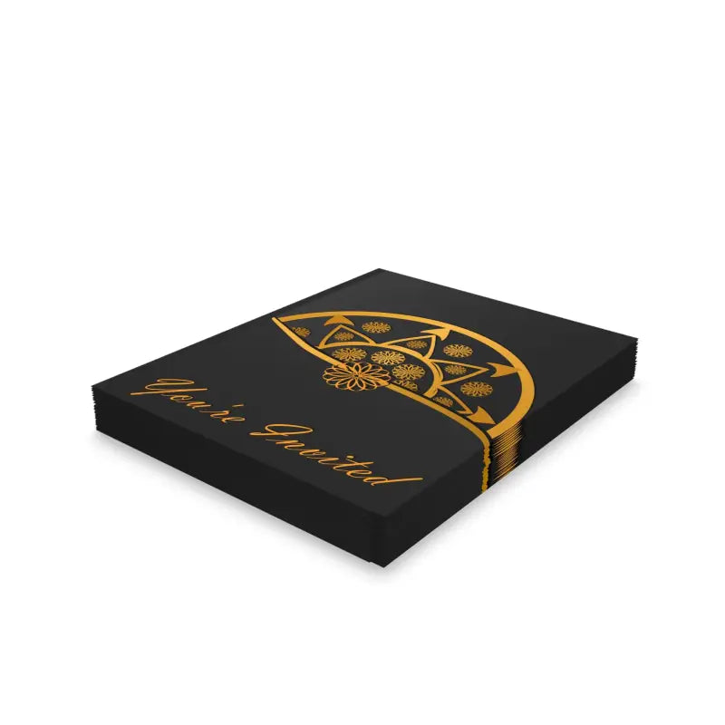 Print: Bold matte finish with double-sided printing creates striking invitations that leave a memorable impression and set the perfect tone for your celebration.
